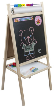 Drewniana, dwustronna i rozkładana tablica magnetyczna to świetny pomysł na kreatywną zabawę Twoich Pociech.