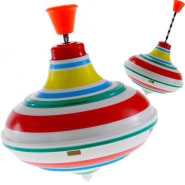 Tradycyjna, ponadczasowa zabawka z kolorową tarczą. Pewnie i Ty pamiętasz z dzieciństwa, jaka to była frajda! Teraz możesz przekazać część swojego dzieciństwa własnemu maluszkowi. Nakręćcie bączka i patrzcie jak wiruje mieniąc się kolorami. Dodatkową atrakcją są dźwięki wydawane przez bączek w czasie gdy się kręci. Zabawka jednocześnie tradycyjna i nowoczesna sprawi, ze nie bedziecie mogli oderwać od niej wzroku.