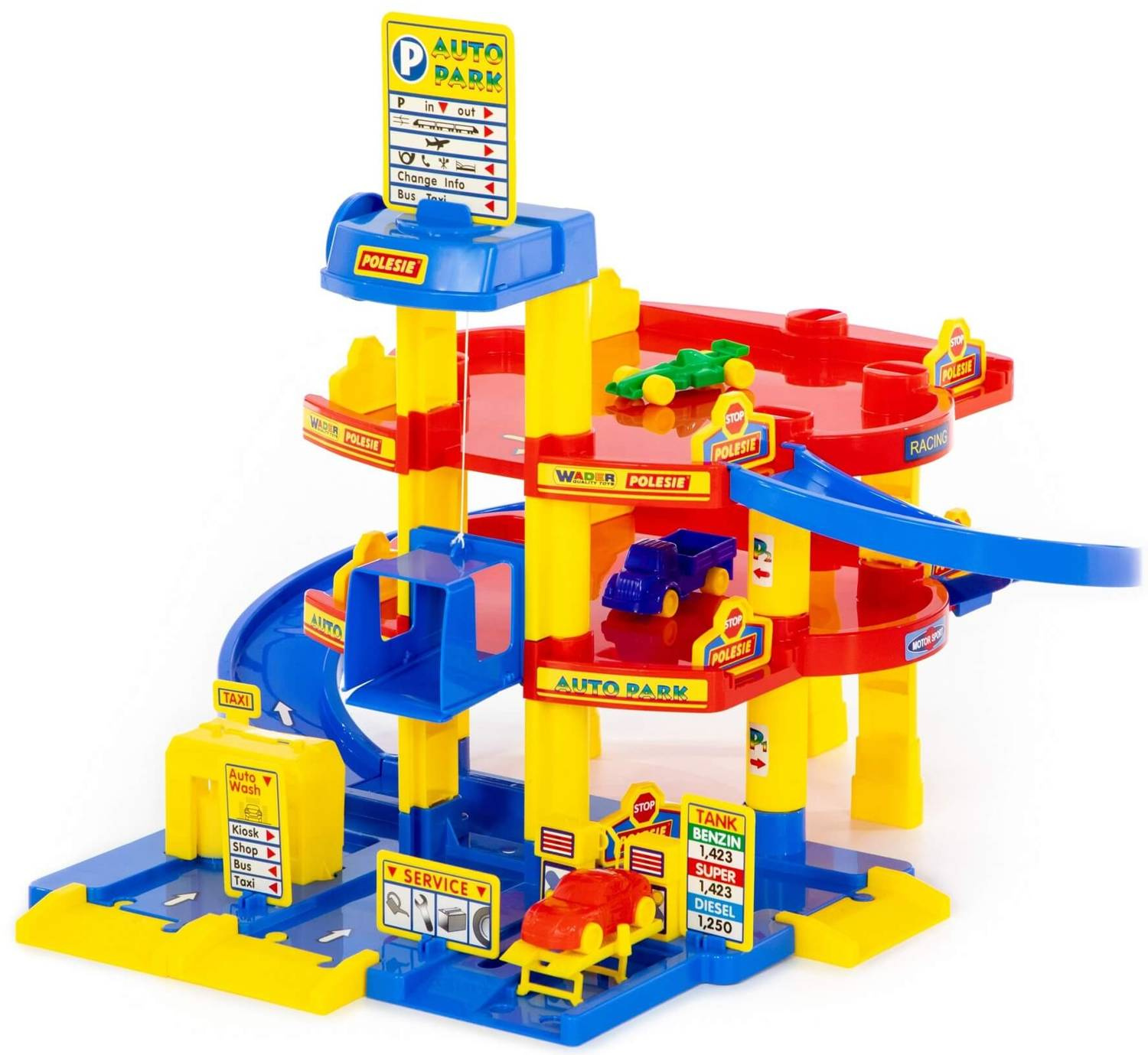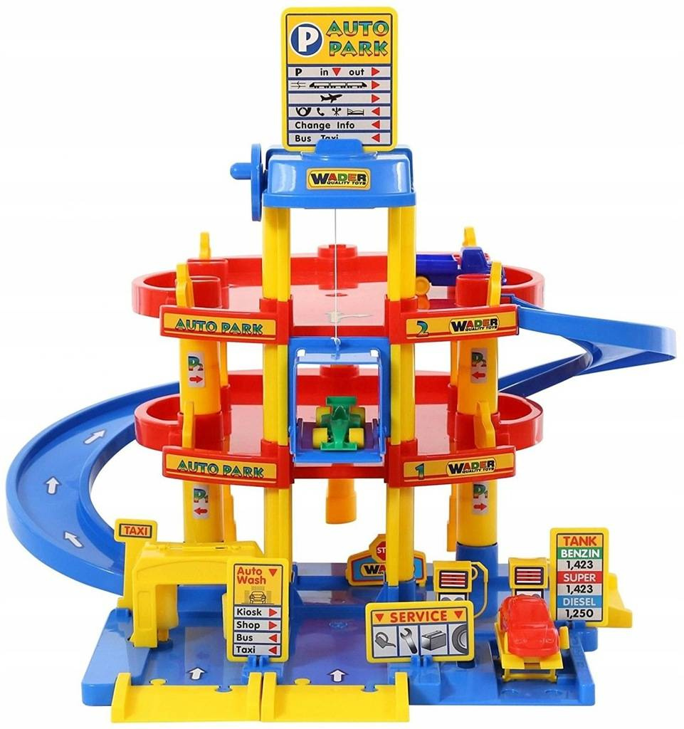 Mega zabawa dla najmłodszych fanów zabawek na czterech kółkach! W tym ogromnym zestawie znajdziesz 3 poziomowy parking z windą samochodową, połączony z myjnią samochodową, warsztatem, sklepem oraz stacją benzynową. Do zestawu załączono 3 autka. Możesz bawić się sam, z rodzeństwem, rówieśnikiem lub tatą czy dziadkiem. To wspaniała okazja aby mali i więksi chłopcy wspólnie spędzili czas.