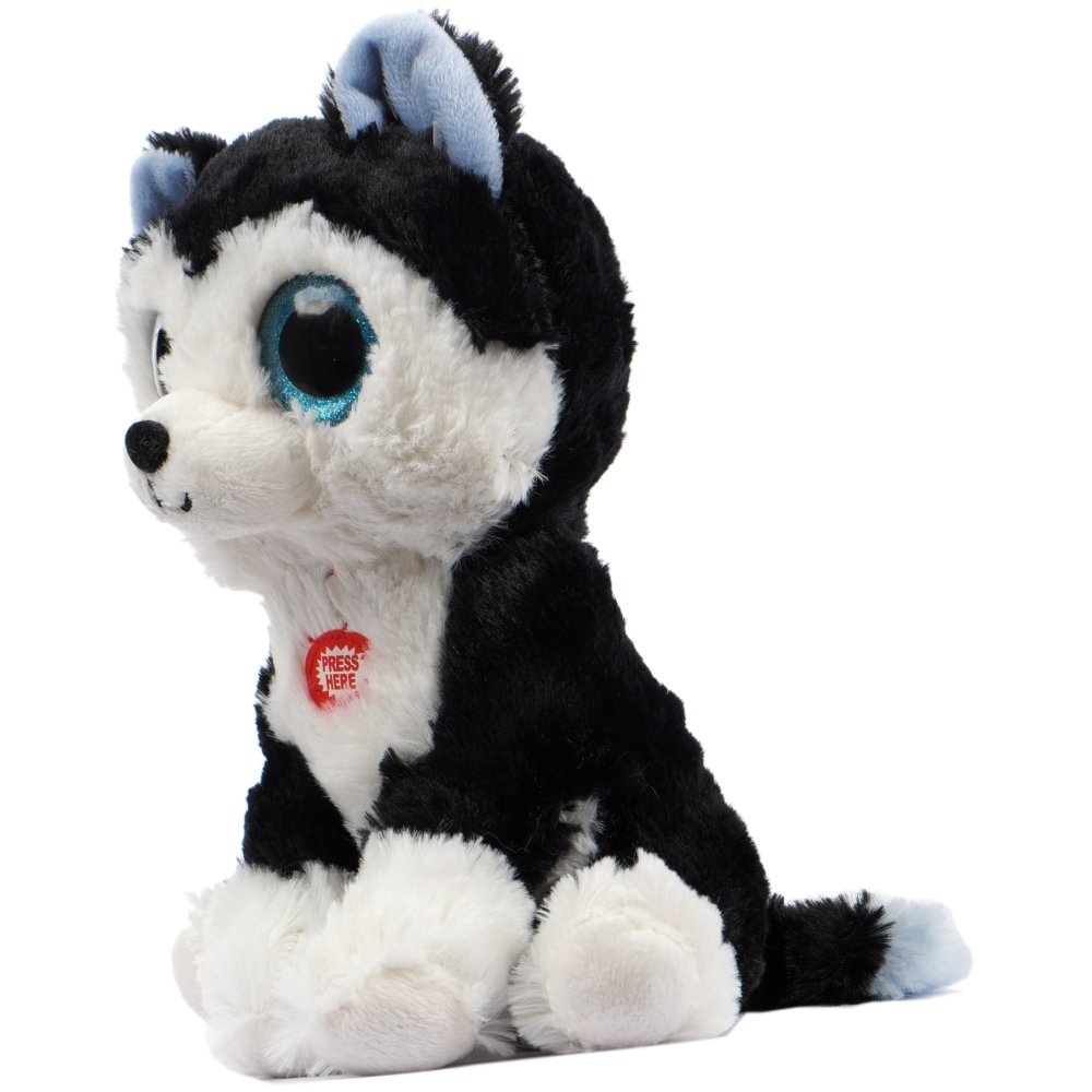Piesek Husky to milutka w dotyku - duża maskotka pluszowa w kolorze czarno-białym, wykonana z wysokiej jakości akrylu. Jego olbrzymie, błyszczące brokatem oczy nadają mu niepowtarzalnego charakteru.