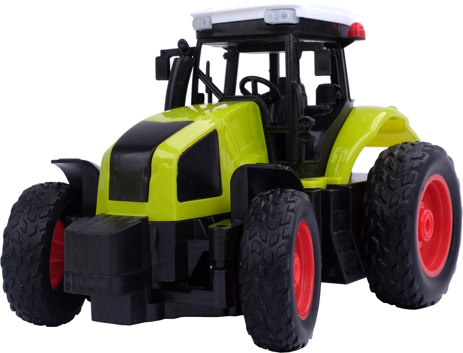 Rewelacyjny traktor który wraz z przyczepą ma ok. 39 cm długości. Traktor sterowany za pomocą zdalnego pilota zapewni chłopcom dużą frajdę i wiele godzin fantastycznej zabawy w farmę. Ciągnik jeździ do przodu, do tyłu oraz skręca w prawo i w lewo. Płynność jazdy zapewnia skrętna oś przednia.