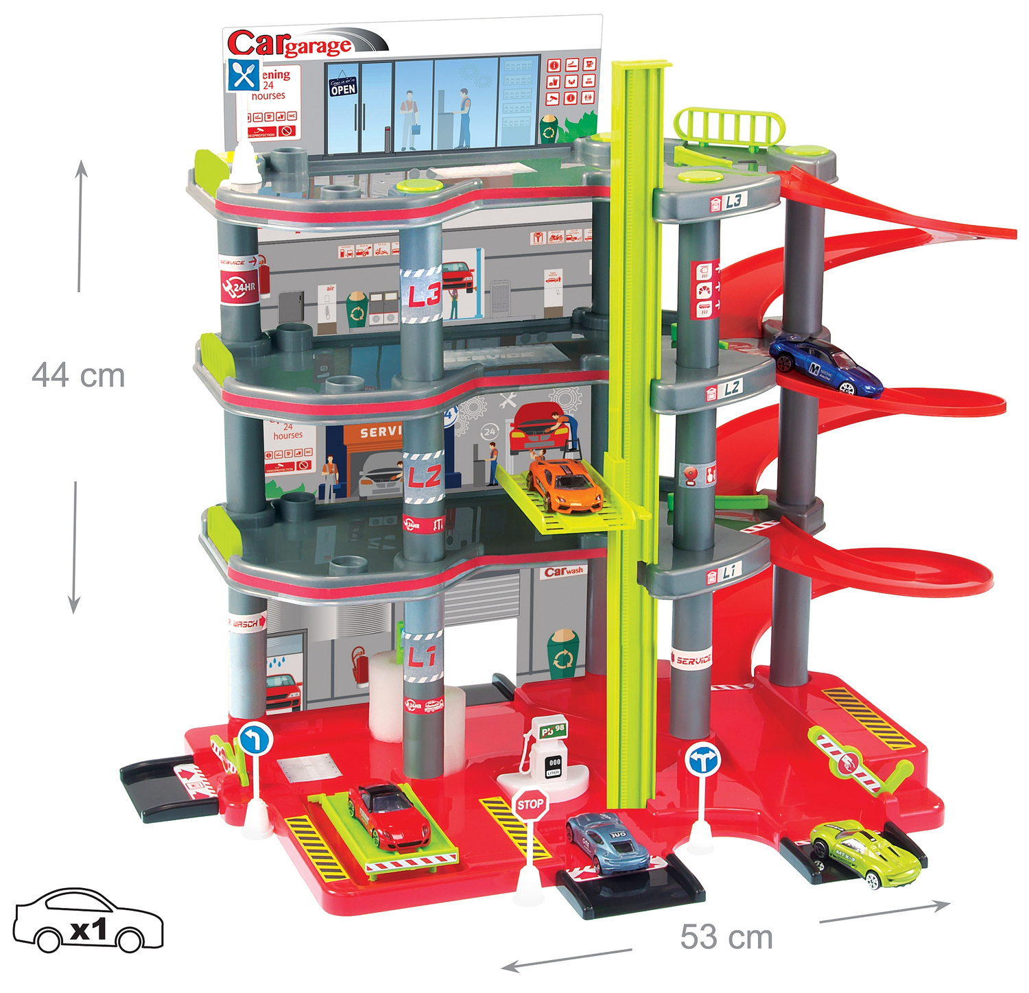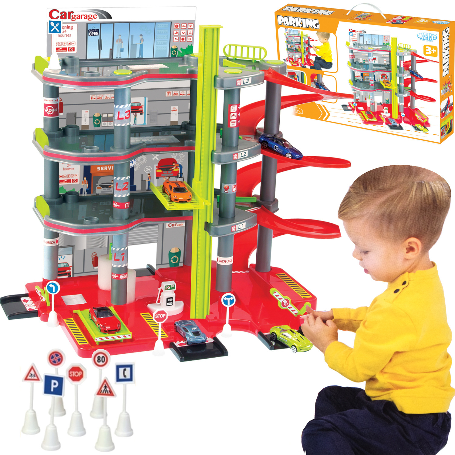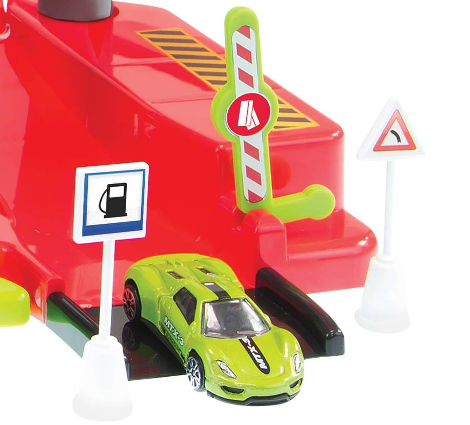 Garaż, stacja paliw może przyprawić o zawrót głowy. Zawiera wszystko co potrzebne małemu kierowcy. Pełne profesjonalne wyposażenie prawdziwego parkingu samochodowego. Wielofunkcyjny parking z wjazdem i wyjazdem szlabany parkingów ruchome. Znajdziesz w tym zestawie mnóstwo atrakcji a Twoja wyobraźnia podpowie scenariusze zabawy.