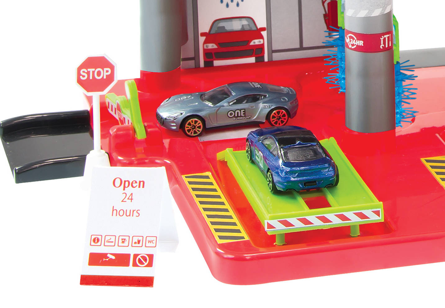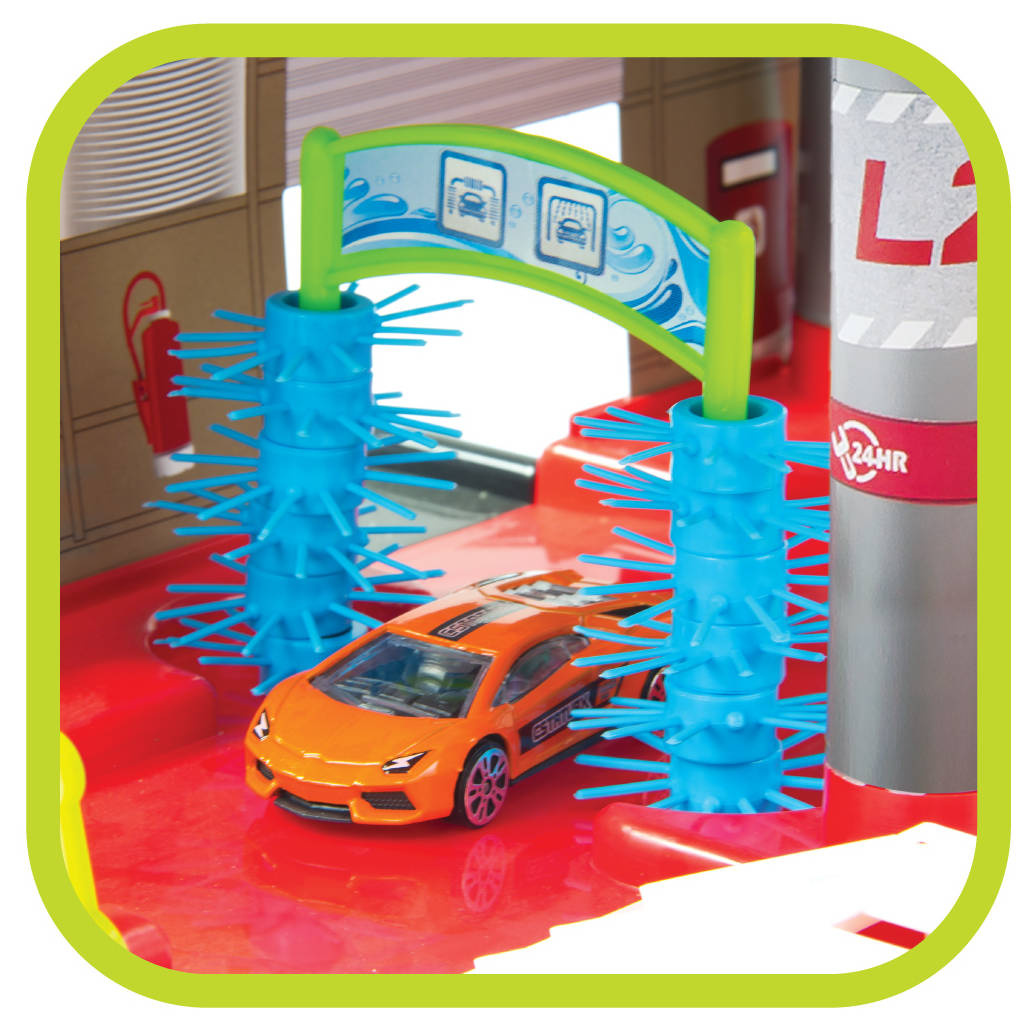 Wjedź windą na dach garażu i zaparkuj na swoim miejscu parkingowym - z powrotem autko może pomknąć w dół spiralnym zjazdem. Gdy będziesz miał problemy z autem na parkingu znajdziesz warsztat samochodowy. Tam otrzymasz profesjonalną pomoc, a miły mechanik szybko naprawi Twoje autko. Autko naprawione i gotowe do podróży? Teraz pozostaje tylko umyć je w myjni, by lśniło czystością. Jest też bar.