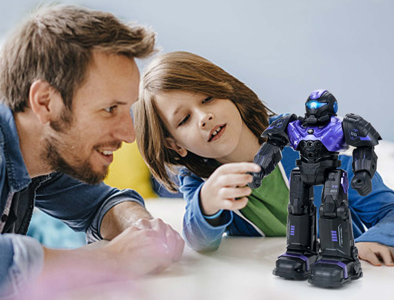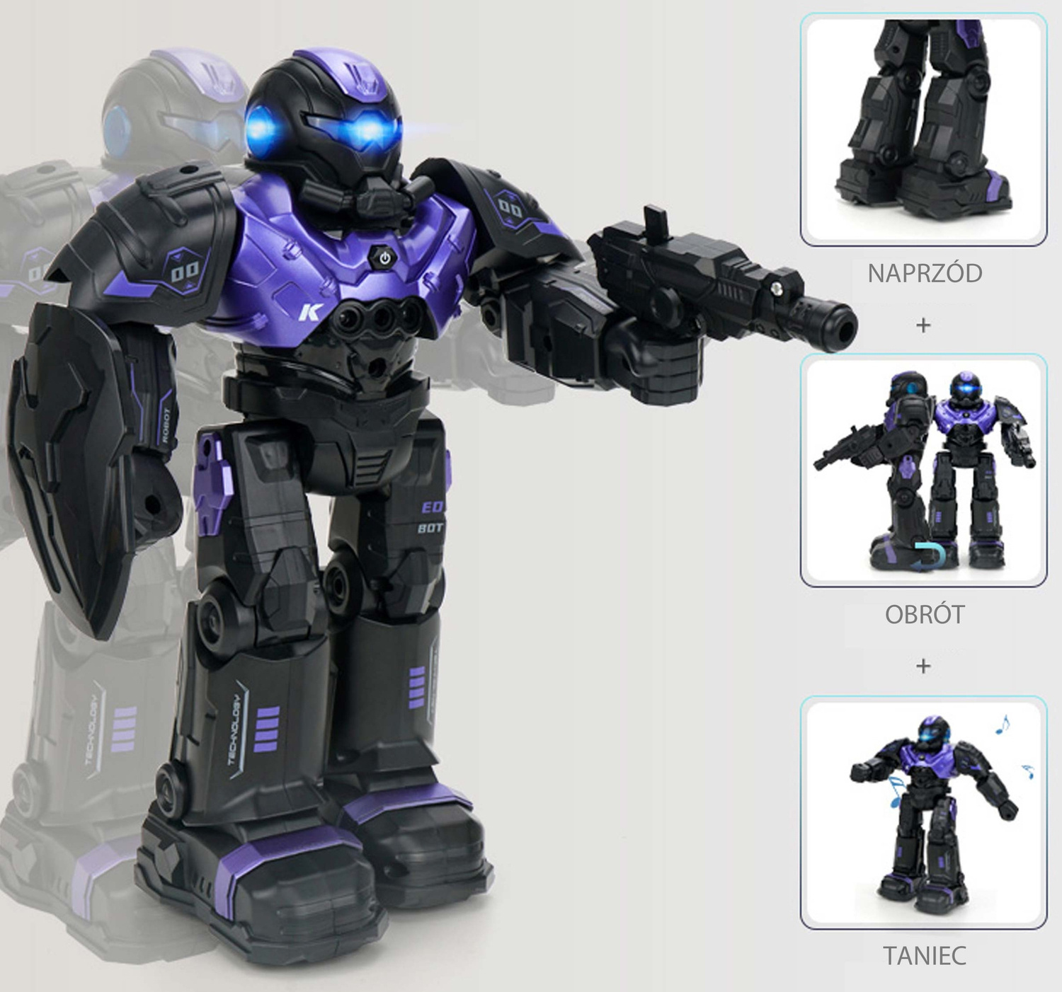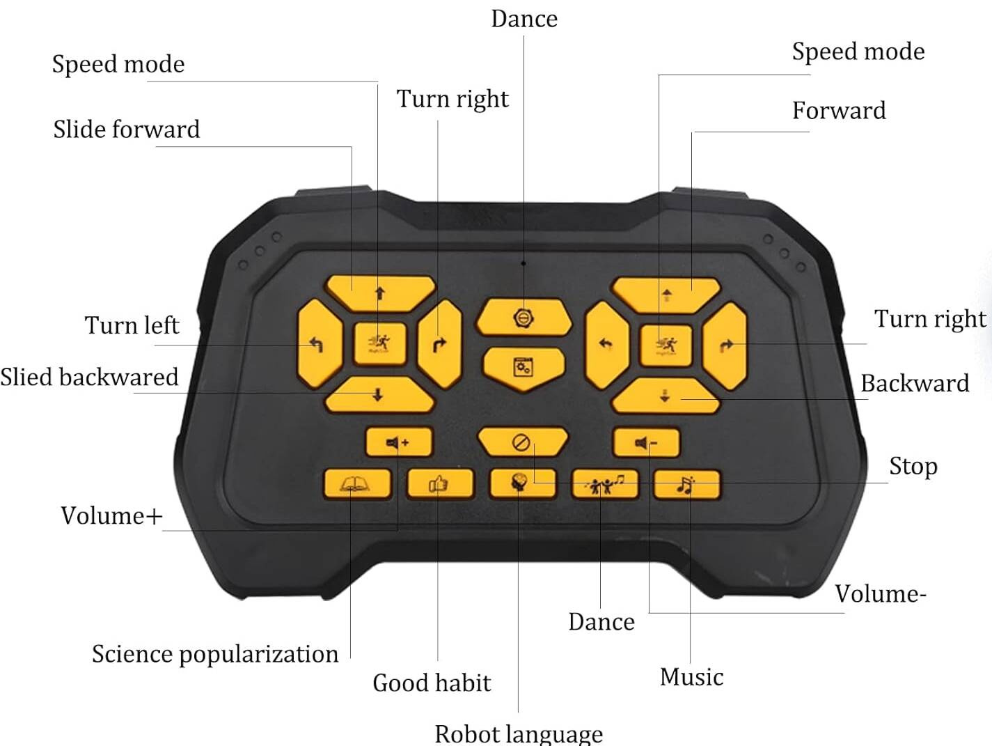 Wszystkie funkcje robota uruchomisz za pomocą pilota. Pomimo swoich rozbudowanych i zaawansowanych funkcji, jest bardzo prosty w obsłudze, Już kilkuletnie dziecko bez problemu powinno poradzić sobie z obsługą.
