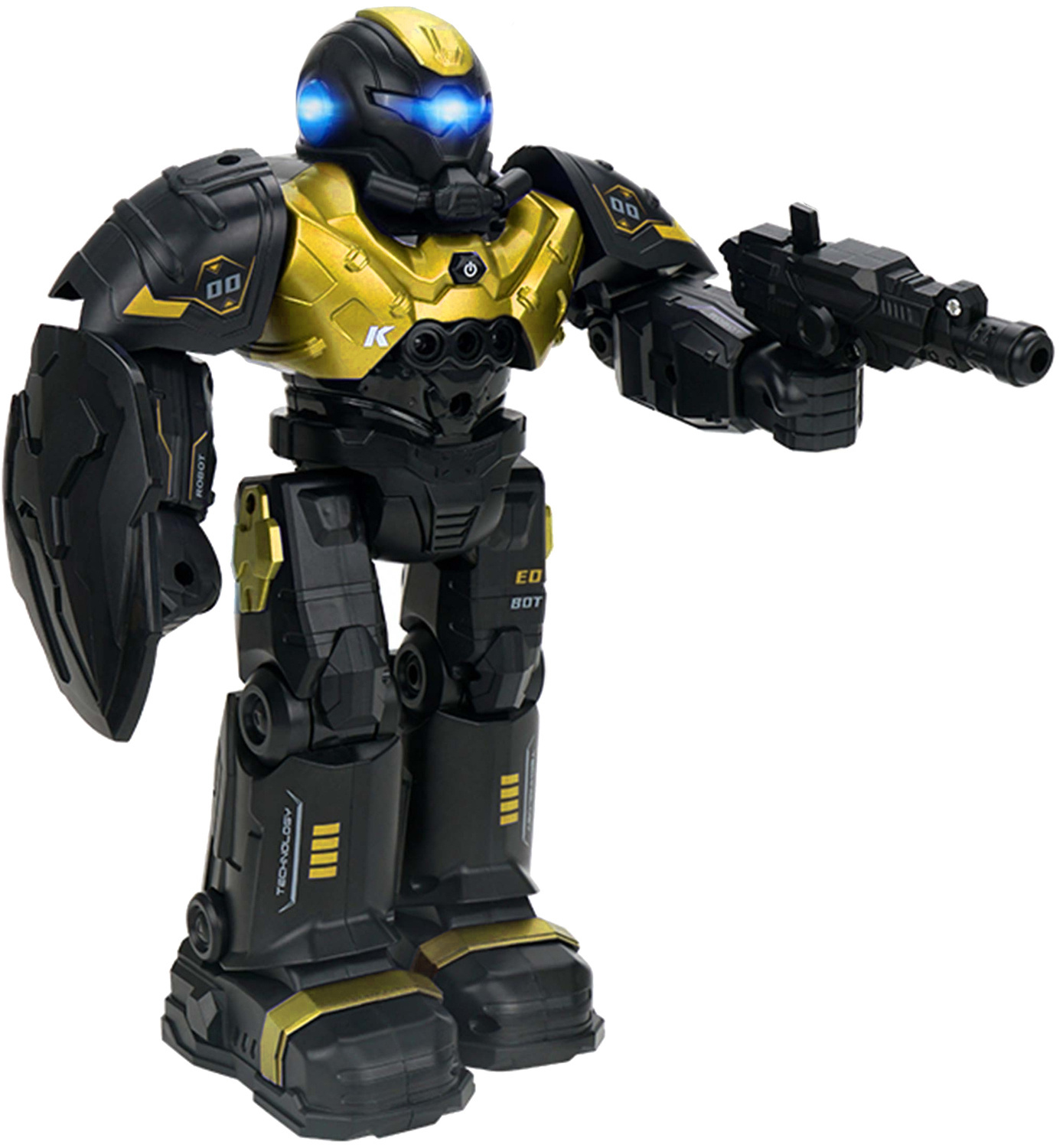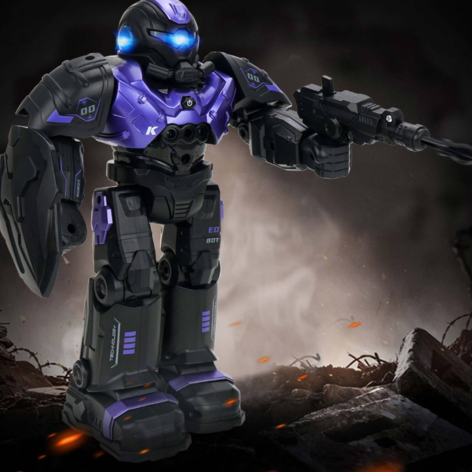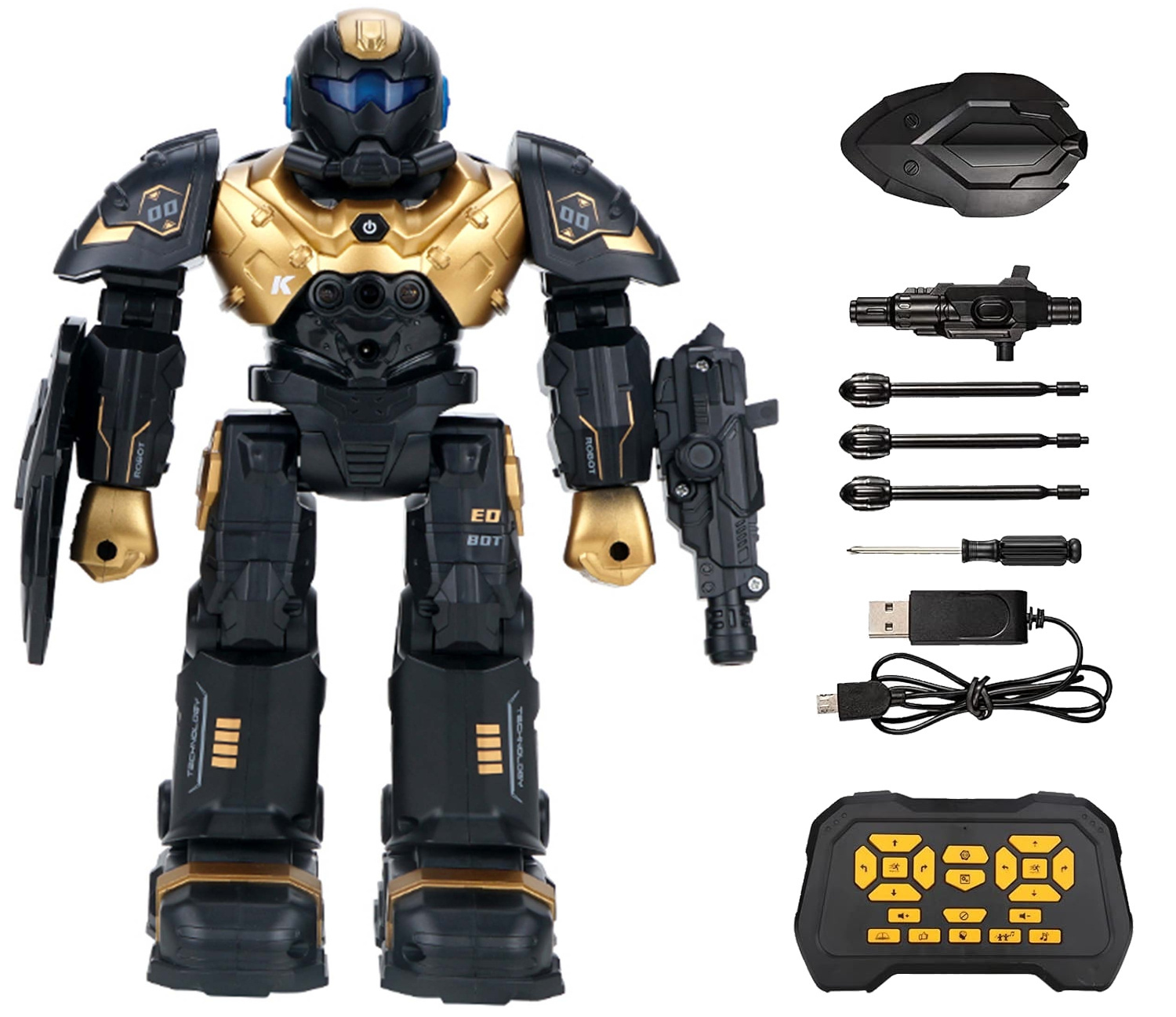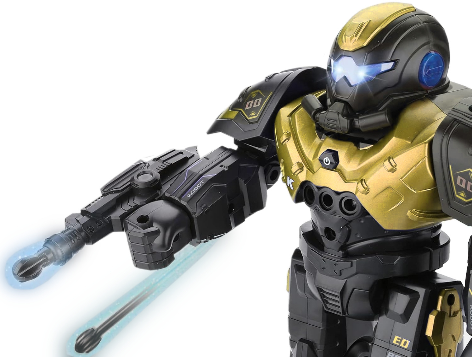 Robot wyposażony jest w tarczę oraz działko z pociskami dzięki czemu możemy wziąć udział w walce. Działko można umieścić na ramieniu lub w dłoni robota. By wystrzelić pocisk należy ręcznie go zwolnić specjalną dźwignią.