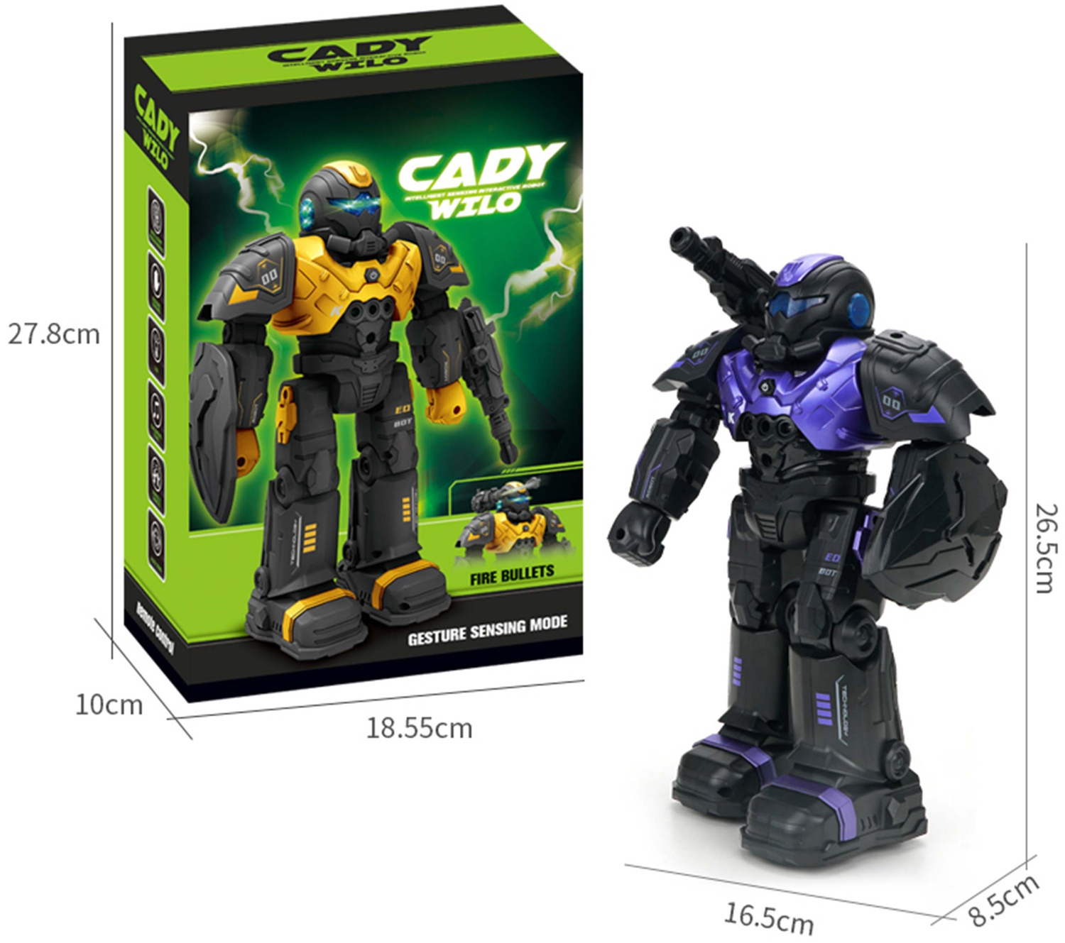 Robot Cady Wilo to najnowsze osiągnięcie robotyki i zabawka, z którą możliwości zabawy są kosmicznie przeogromne. Przybył na ziemię by wykonywać Twoje komendy i pokazać Ci swoje umiejętności. A tych jest niezwykle dużo... Naciśnij przycisk start na piersi robota, aby go uruchomić. Światełko wewnątrz hełmu zaświeci się i usłyszysz kosmiczne dźwięki, po czym Robot przemówi do Ciebie. To dopiero początek niezliczonych przygód. Robota można sterować za pomocą załączonego pilota na podczerwień.