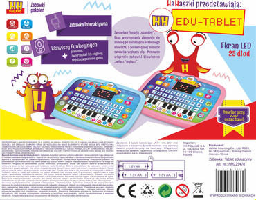 Zabawka posiada dużą i wygodną klawiaturę ze wszystkimi literami alfabetu oraz ekran LED. Tablet poprawnie wymawia głoski co pomoże w nauce czytania.