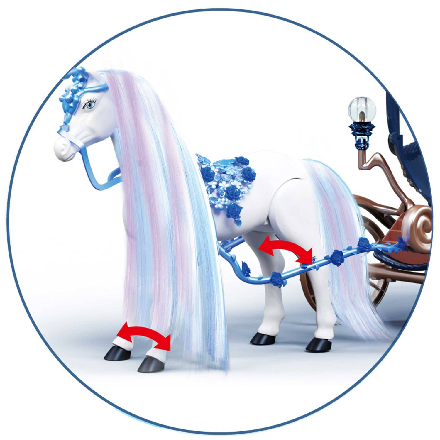 Długa grzywa konika idealnie nadaje się do czesania i układania fryzur. Idealny zestaw do samodzielnej zabawy lub z lalkami typu Barbie.