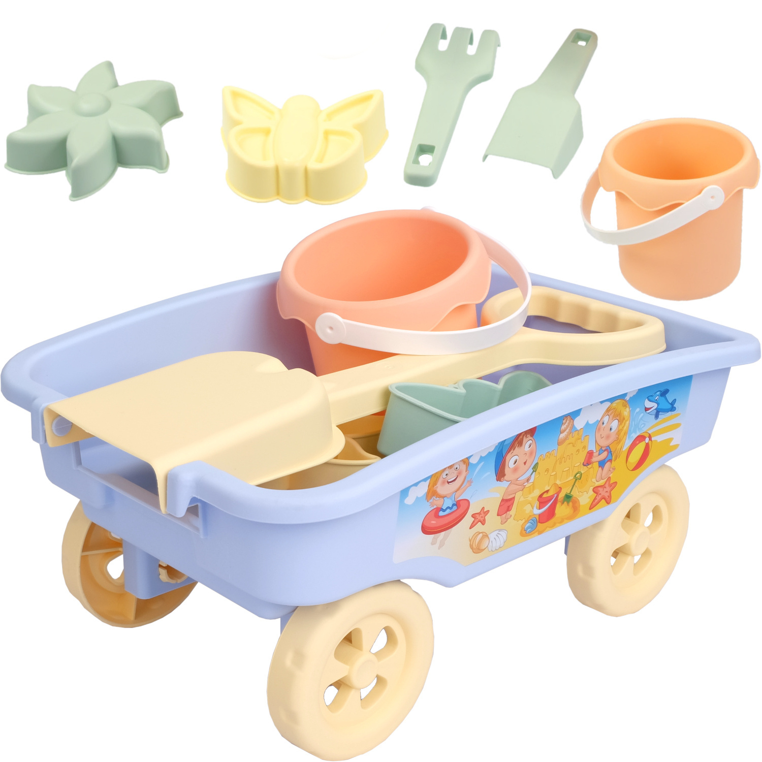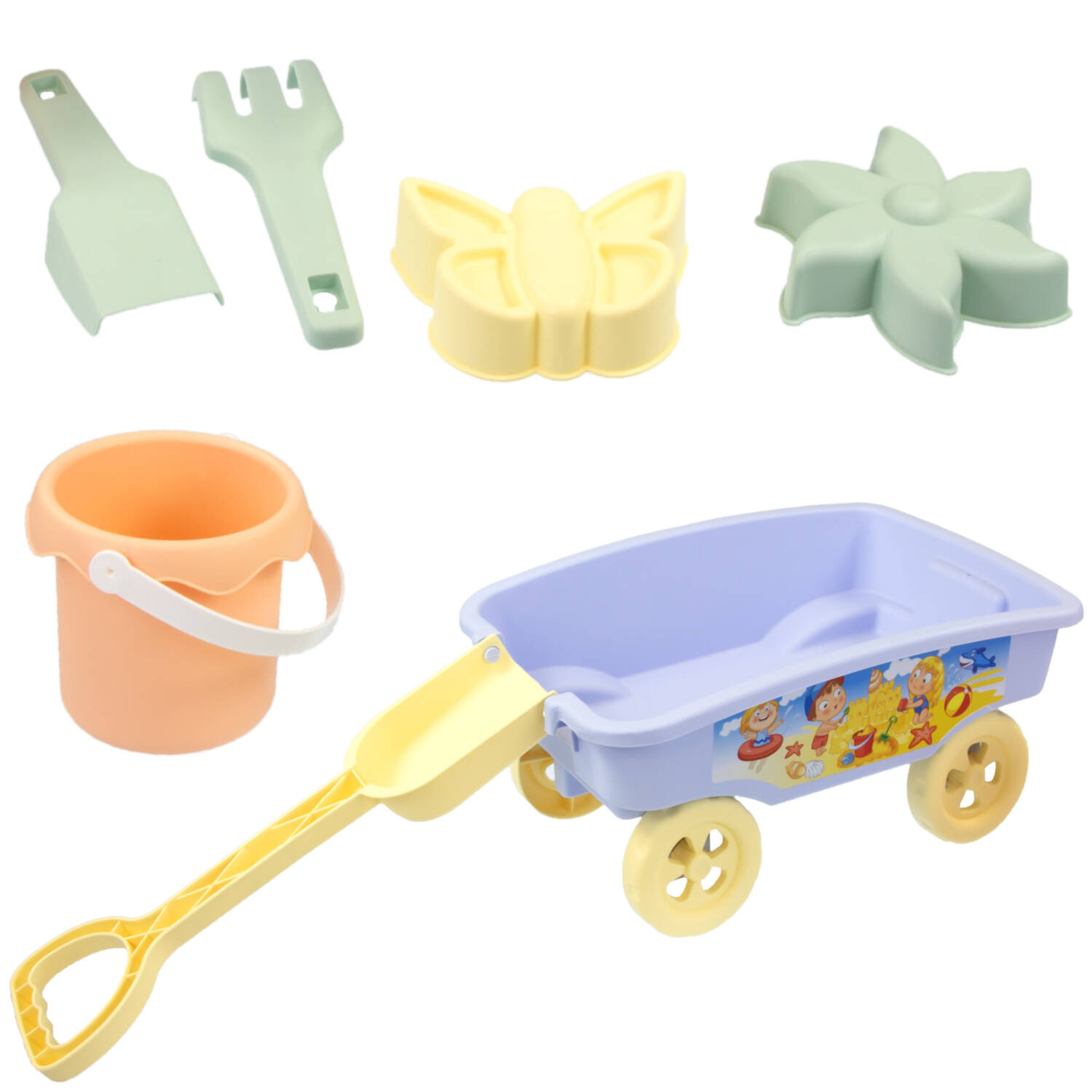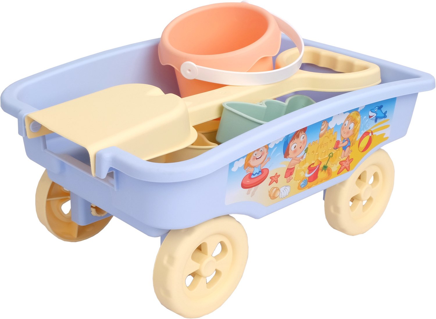 Cztery kółka zapewniają stabilność. Rączka jest składana, dzięki czemu zabawkę łatwo przechowywać. Rączkę można odczepić od wózka i wykorzystywać ją jako dużą łopatkę. Piękne pastelowe kolory przyciągną wzrok dziecka i zachęcą do zabawy. Wózek to gwarancja ekscytującej, rozwijającej wyobraźnię, zabawy przez długie godziny.