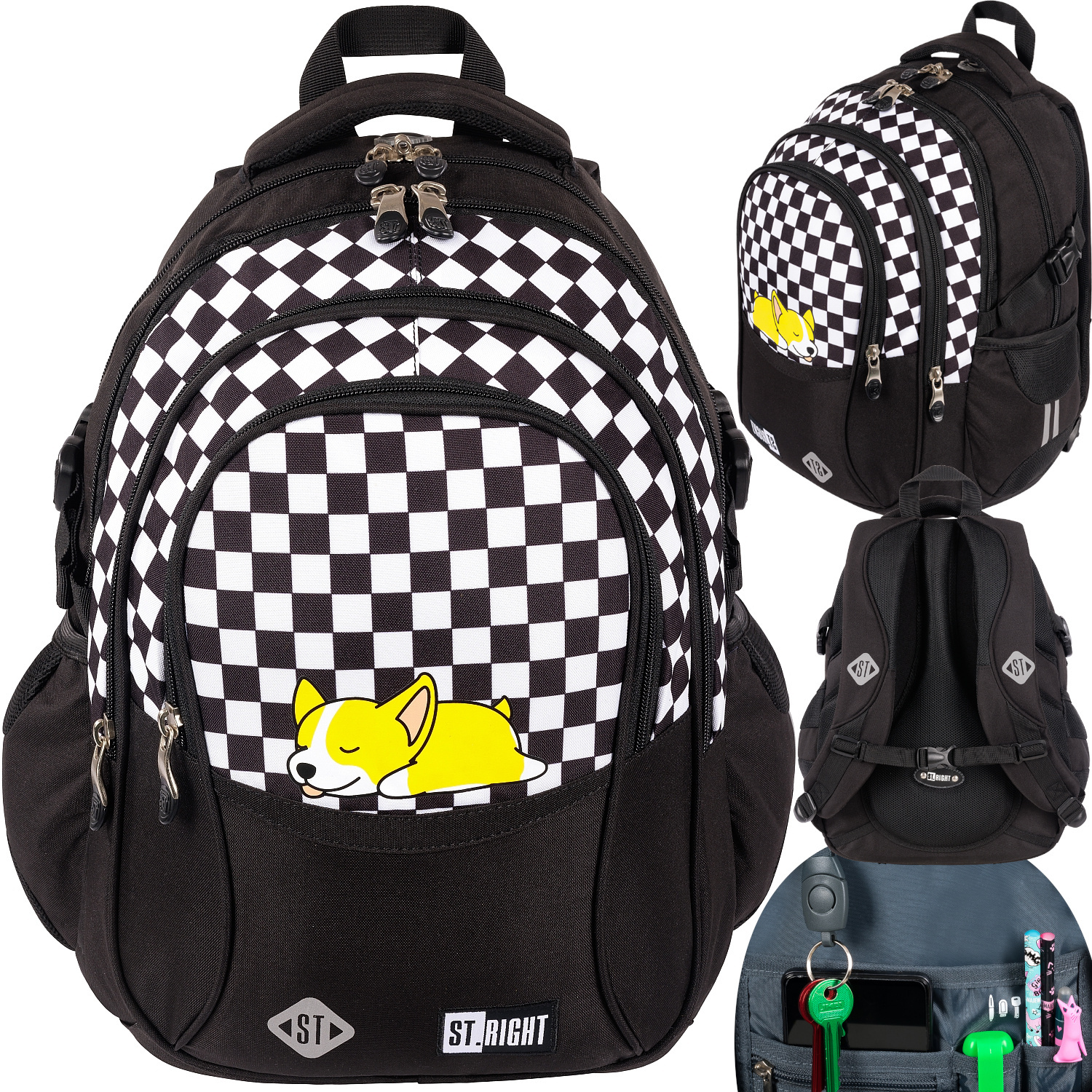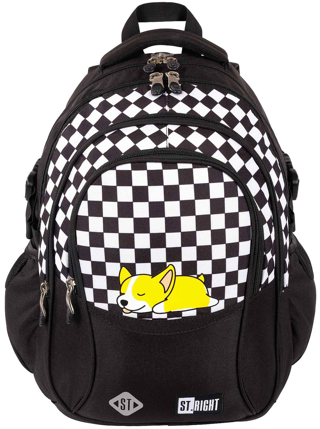 ST.RIGHT 4-KOMOROWY PLECAK SZKOLNY BP-01 SLEPPY CORGI - KRATA SZACHOWNICA