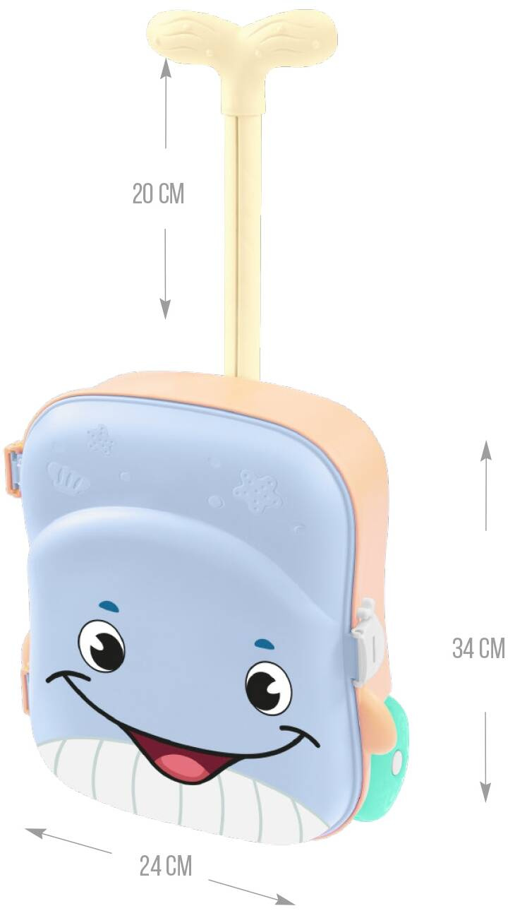 Wszystkie elementy zestaw mieszczą się bez problemu w zabawnej walizeczce. Walizka jest niezwykle praktyczna, kółka oraz rozkładana rączka ułatwi transport oraz przechowywanie walizki