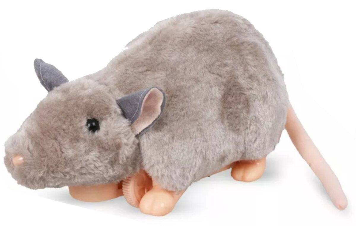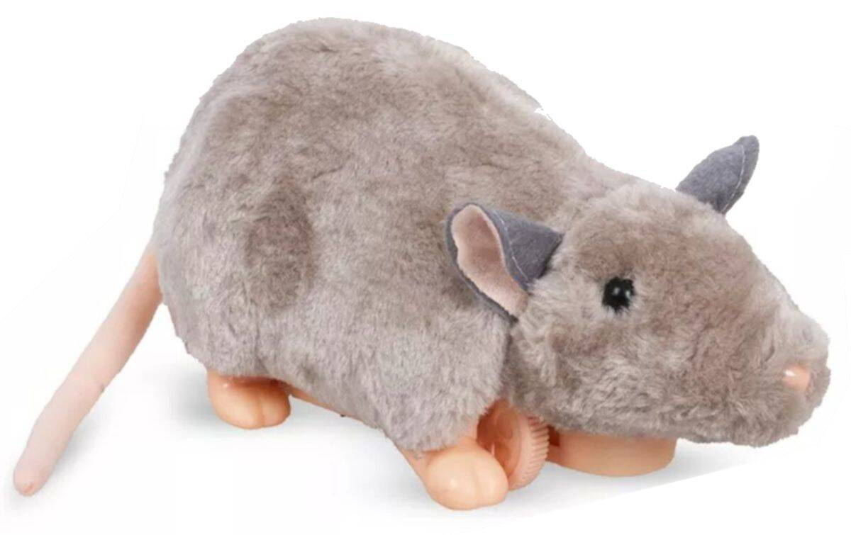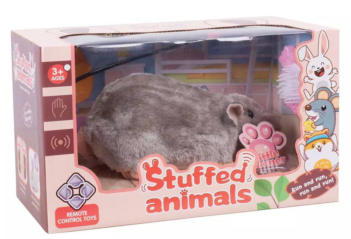 To zabawkowa mysz sterowana zdalnie, wygląda jak prawdziwa. Jest pokryta miękkim, szarym futerkiem, a jej ogon i nogi są cieliste, co dodaje jej realistycznego wyglądu. W zestawie znajduje się pilot zdalnego sterowania, przypominający pada do gier, z długą anteną i czterema czerwonymi przyciskami do kontrolowania ruchu myszy.