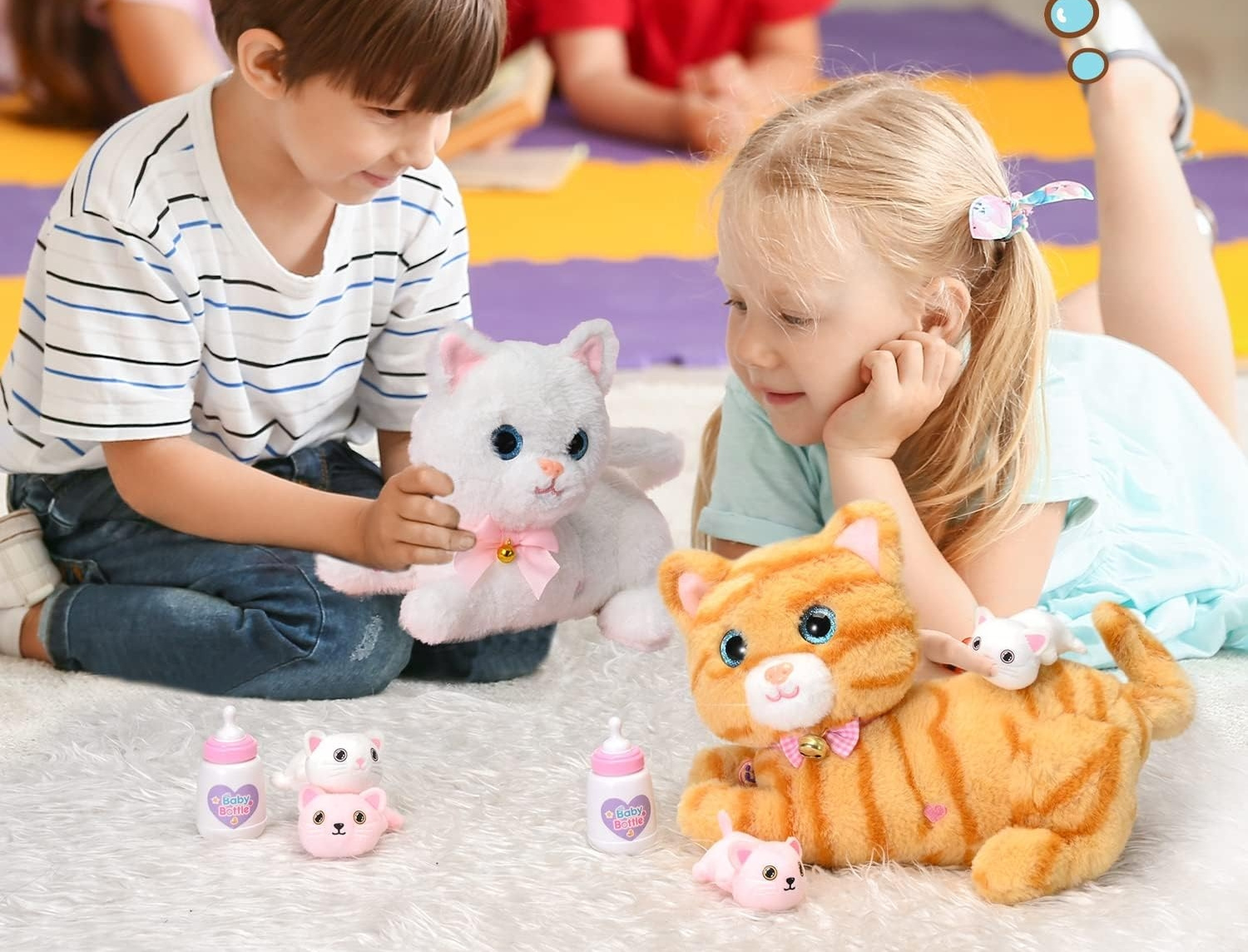 Dzieci uwielbiają słodkie kociaki. Marzą o własnym kotku, z którym mogłyby bawić się i głaskać jego puchate futerko. Ale na prośby o małego puchatego przyjaciela rodzice odpowiadają "Jesteś jeszcze za mała". Uroczy pluszowy kotek to odpowiedź na dziecięce marzenia. Mięciutki kotek zachowuje się zupełnie jak prawdziwy kociak: miauczy, mruczy a nawet ma własne małe kotki którymi się opiekuje! Uwielbia być głaskany i przytulany, wtedy naprawdę jest szczęśliwy!