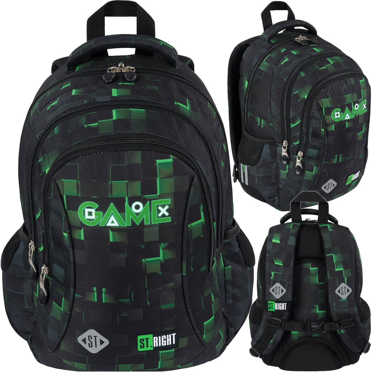 ST.RIGHT 3-KOMOROWY PLECAK SZKOLNY BP-26 GREEN GAME