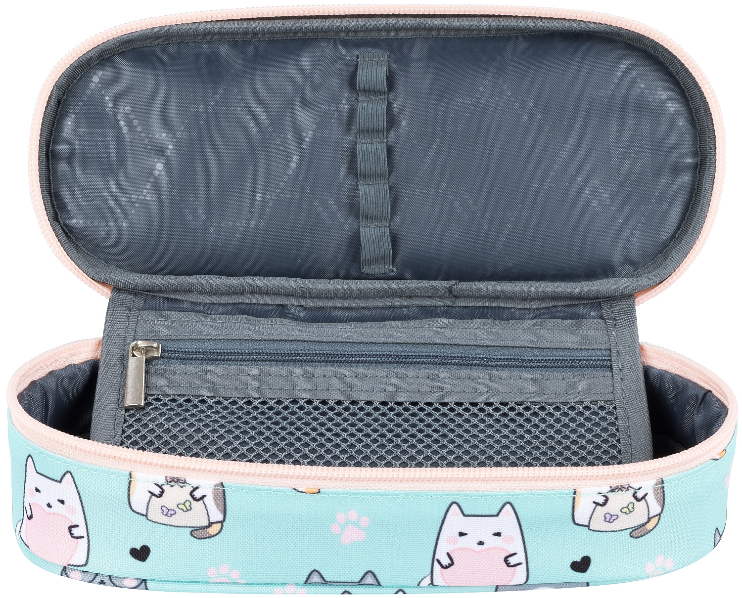 Wyjątkowo pojemny usztywniony piórnik, zapinany na zamek błyskawiczny. W środku saszetki znajduję się usztywniona klapka, która posiada kieszonkę zapinaną na suwak i miejsce na przybory piśmiennicze. Piórnik pozwoli spakować wszystkie niezbędne przybory szkolne. Saszetka została zaprojektowana z niezwykłą starannością i dbałością o każdy szczegół dzięki czemu całość wpływa na komfort dziecka.
