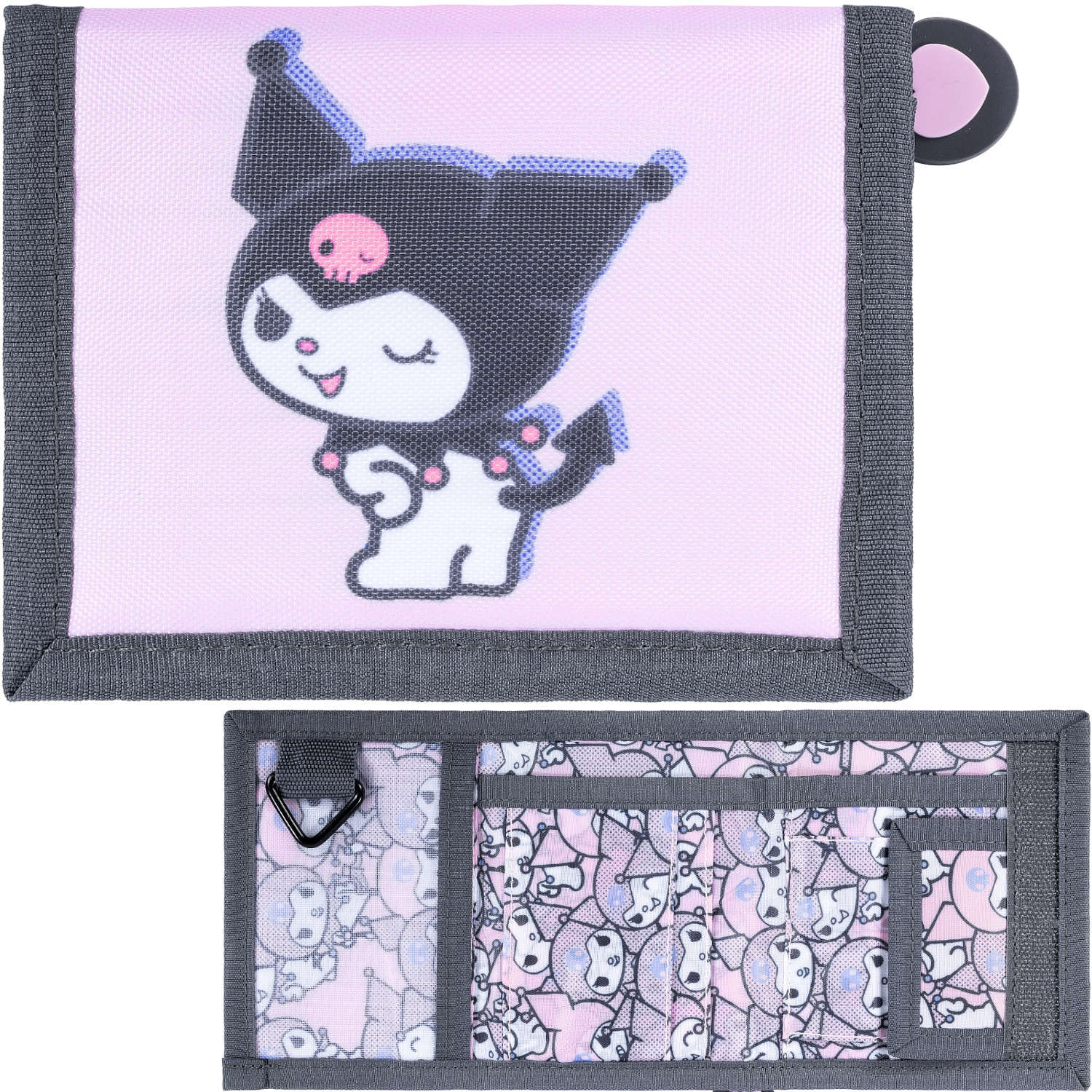 Piękny dziecięcy portfel, idealny na przechowanie pierwszego kieszonkowego, do szkoły, czy na wycieczkę. Portfel z grafikami z kolekcji Kuromi jest modny, praktyczny i wygodny. Wykonany z mocnego nieprzemakalnego materiału w pięknej kolorystyce. Wygodne zamykanie na rzep, liczne przegródki w tym przezroczysta na dokumenty zapewnią komfort użytkowania. Portfel jest solidnie uszyty a jego wykonanie cechuje wysoka jakość.