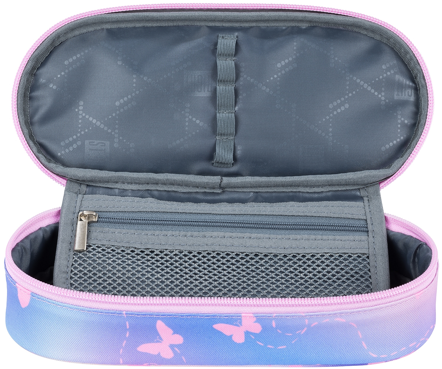 Wyjątkowo pojemny usztywniony piórnik, zapinany na zamek błyskawiczny. W środku saszetki znajduję się usztywniona klapka, która posiada kieszonkę zapinaną na suwak i miejsce na przybory piśmiennicze. Piórnik pozwoli spakować wszystkie niezbędne przybory szkolne. Saszetka została zaprojektowana z niezwykłą starannością i dbałością o każdy szczegół dzięki czemu całość wpływa na komfort dziecka.