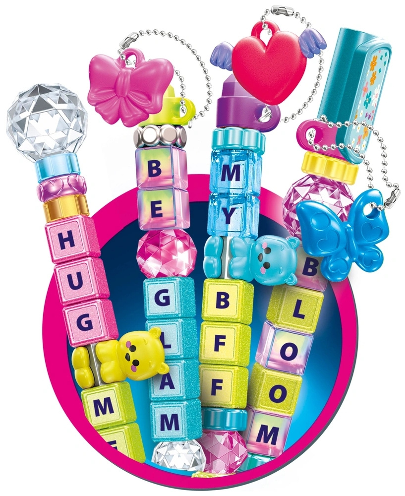 Zestaw zawiera ponad 100 błyszczących, modnych detali dekoracyjnych, literek i akcesoriów, którymi dziecko wypełni korpusy długopisów i stworzy niepowtarzalne pisaki.