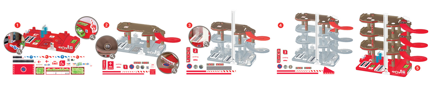 Garaż, stacja paliw może przyprawić o zawrót głowy. Zawiera wszystko co potrzebne małemu kierowcy. Pełne profesjonalne wyposażenie prawdziwego parkingu samochodowego. Wielofunkcyjny parking z wjazdem i wyjazdem szlabany parkingów ruchome. Znajdziesz w tym zestawie mnóstwo atrakcji a Twoja wyobraźnia podpowie scenariusze zabawy.