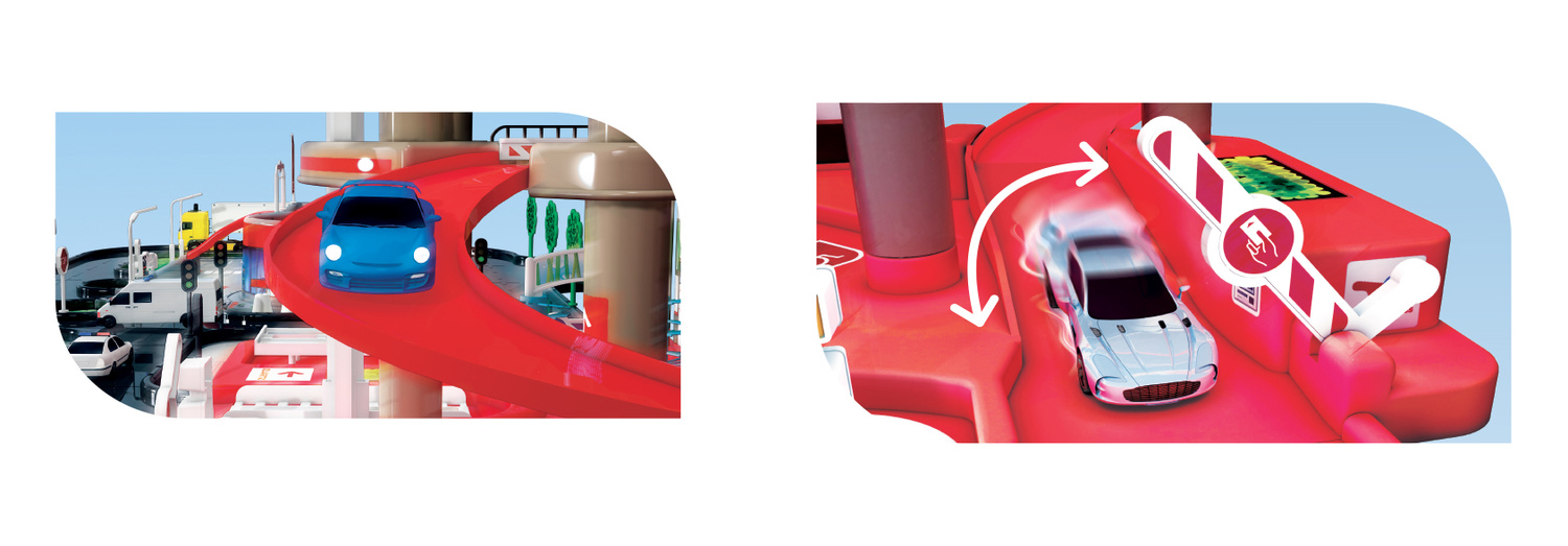 Wjedź windą na dach garażu i zaparkuj na swoim miejscu parkingowym - z powrotem autko może pomknąć w dół spiralnym zjazdem. Gdy będziesz miał problemy z autem na parkingu znajdziesz warsztat samochodowy. Tam otrzymasz profesjonalną pomoc, a miły mechanik szybko naprawi Twoje autko. Autko naprawione i gotowe do podróży? Teraz pozostaje tylko umyć je w myjni, by lśniło czystością. Jest też bar.
