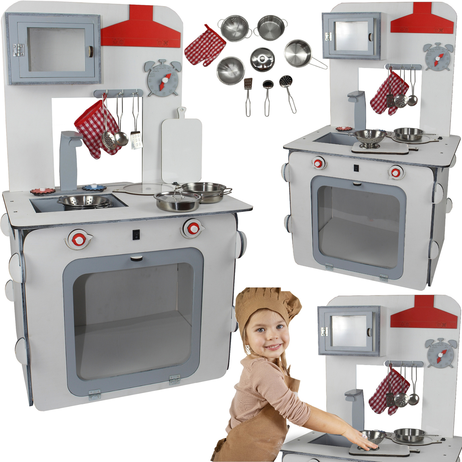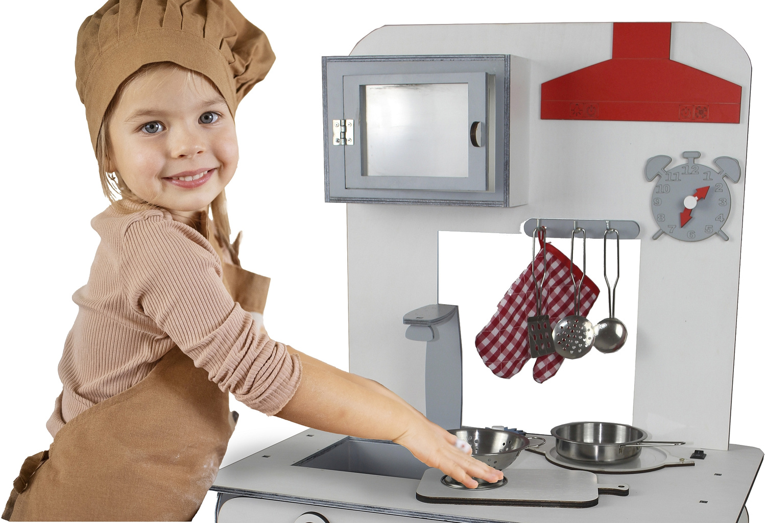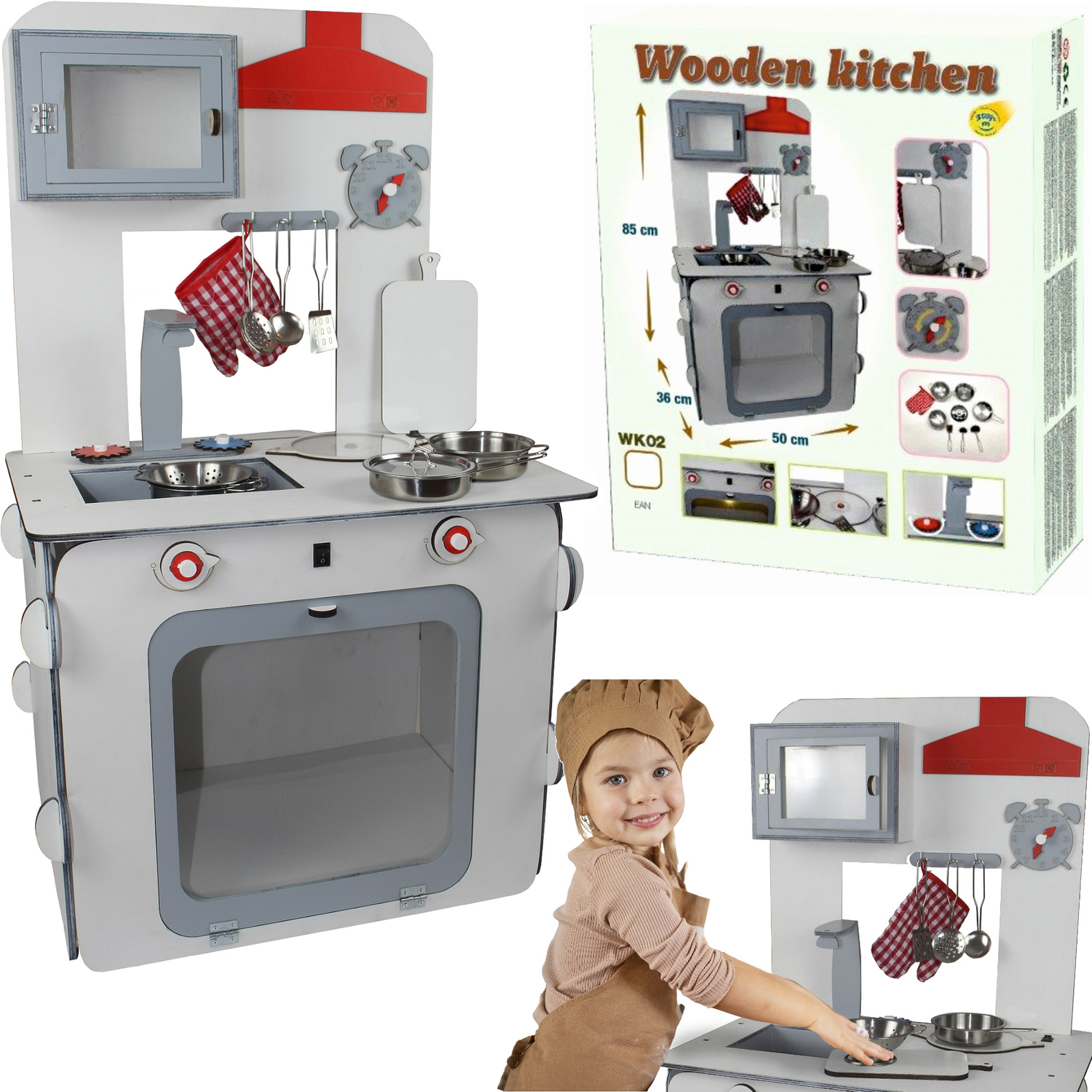 Czy Twoja pociecha lubi przebywać w kuchni, podczas gdy Ty przygotowujesz niedzielny obiad dla rodziny? Świetnie się składa. Specjalnie dla młodych kucharzy oferujemy klasyczną drewnianą kuchnię. Jest to propozycja ciekawej i wciągającej zabawy dla dzieci, które chętnie naśladują zajęcia dorosłych.