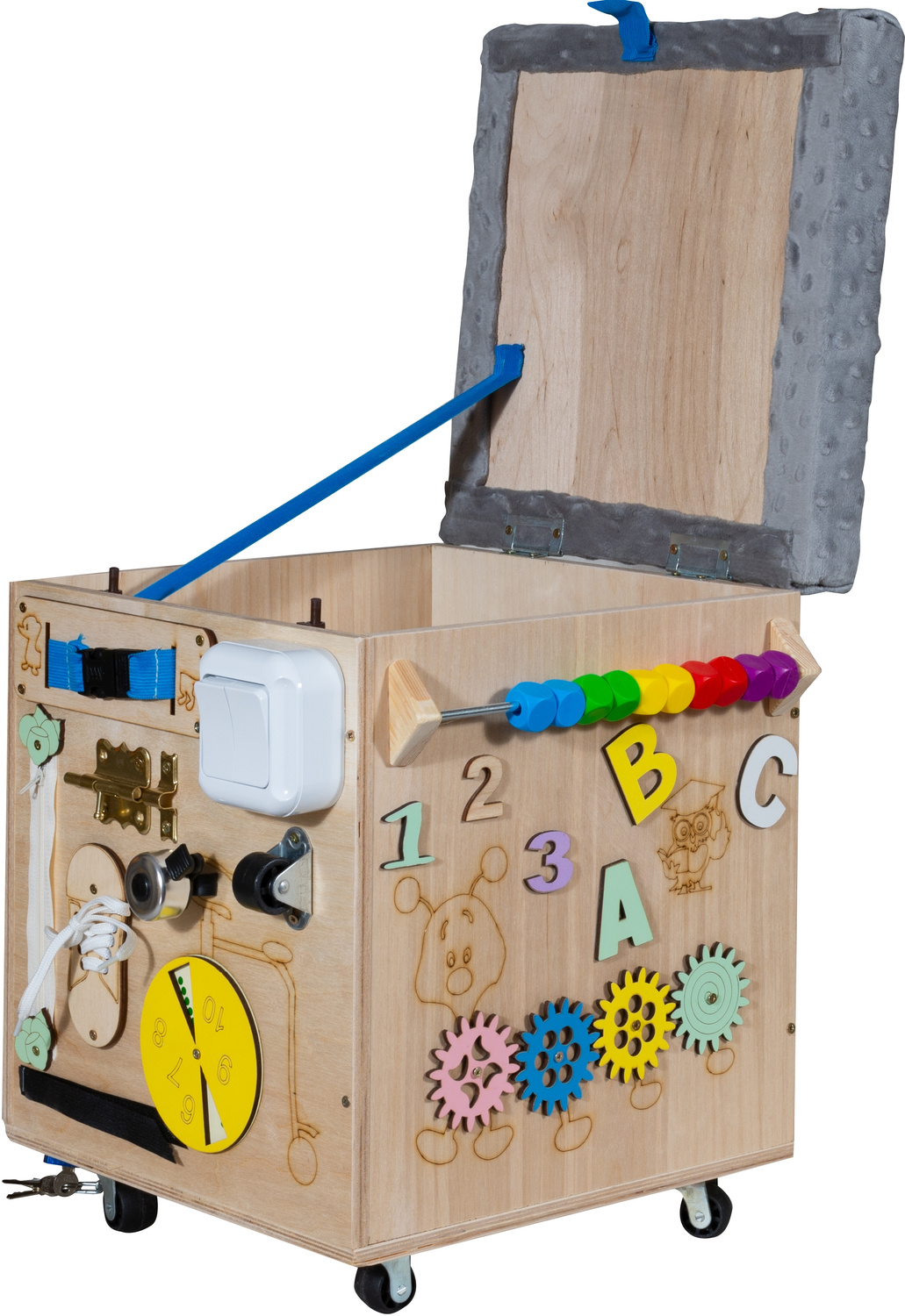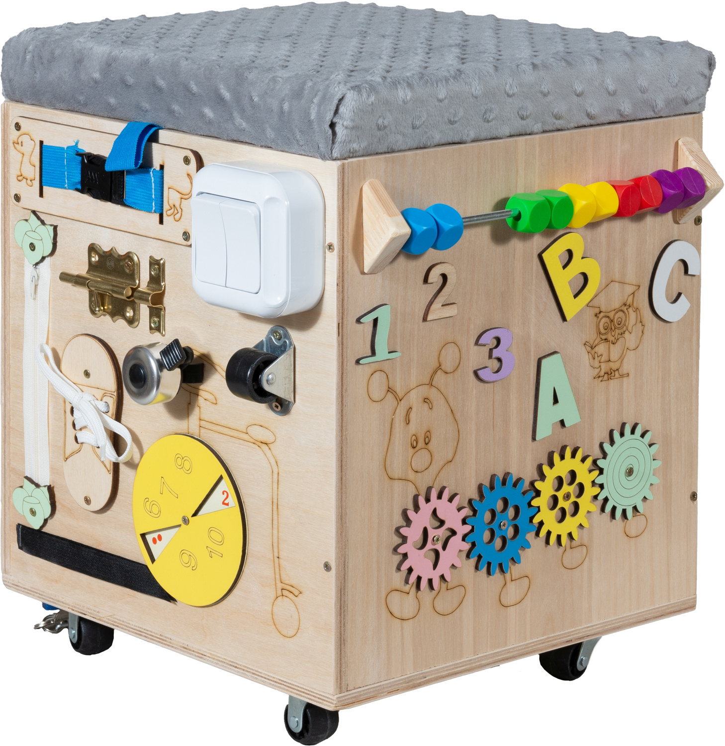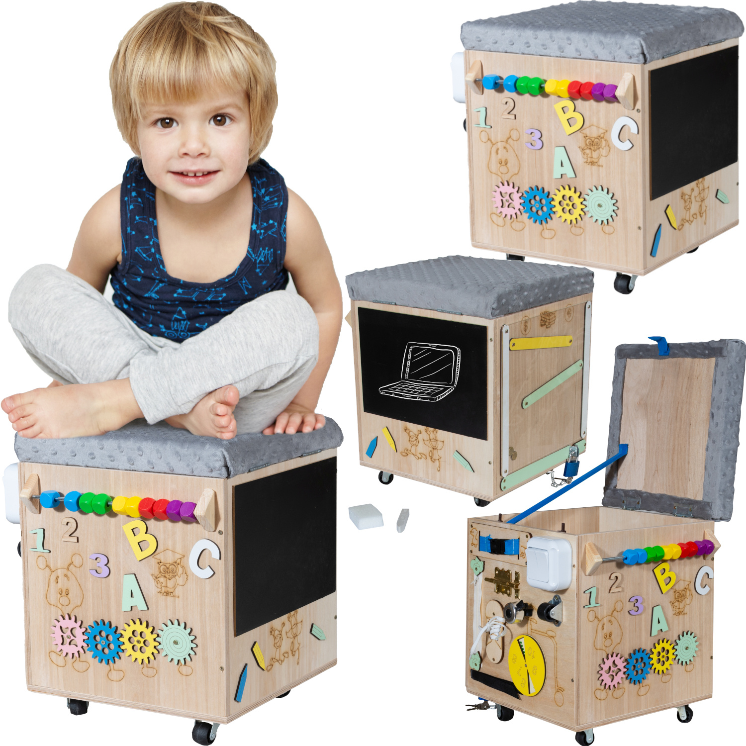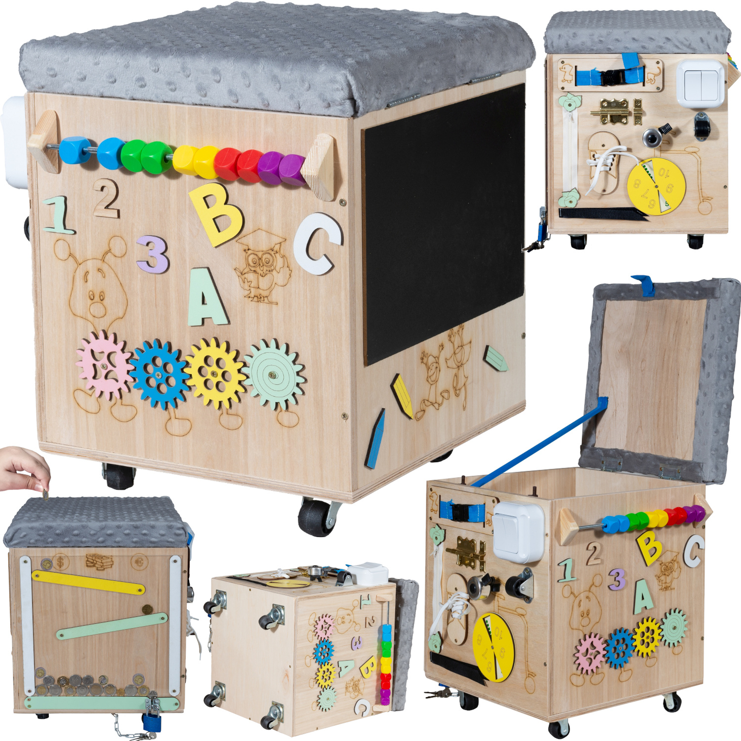 SKRZYNIA MANIPULACYJNA PUFA MONTESSORI TABLICA DLA DZIECI