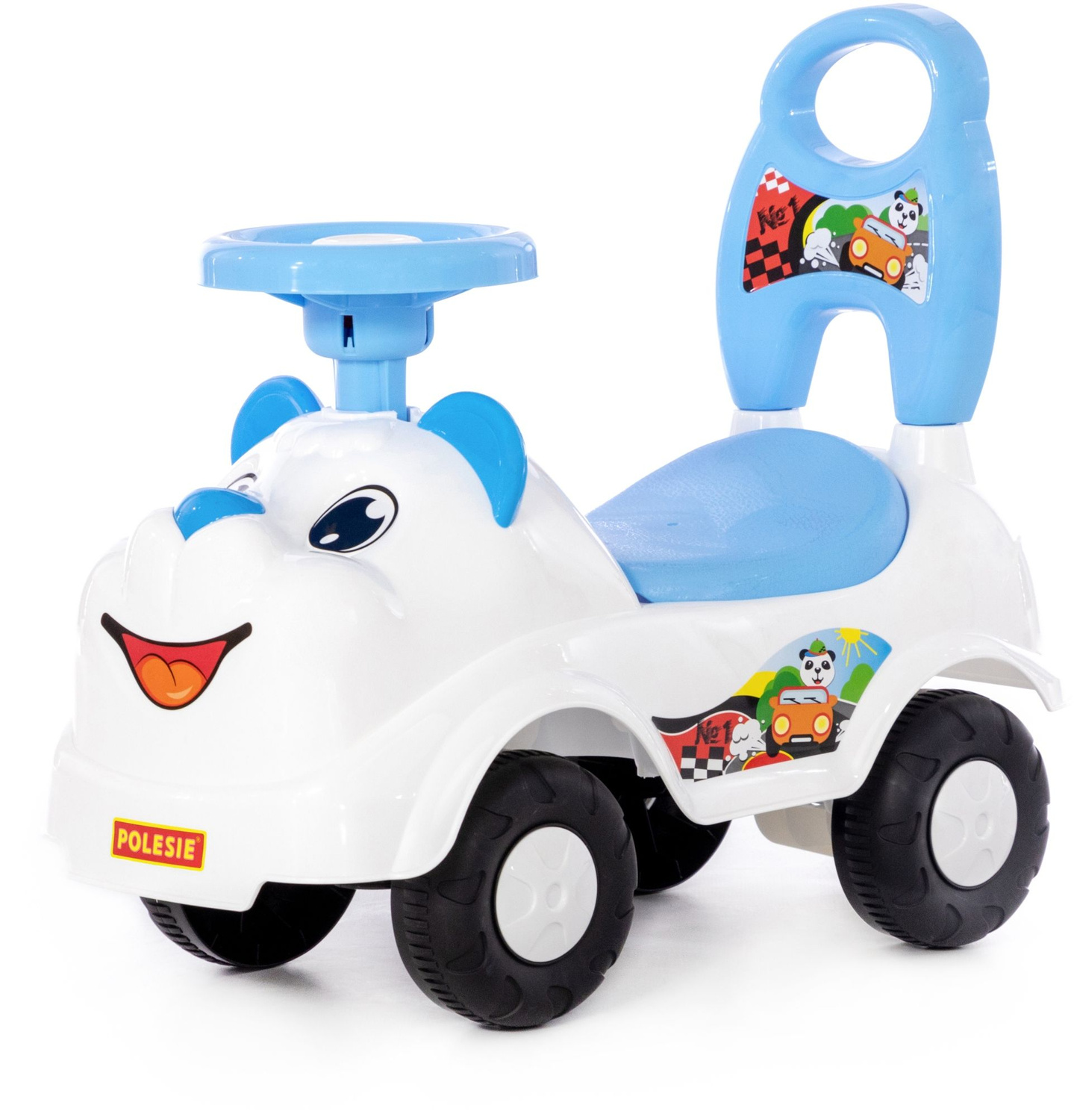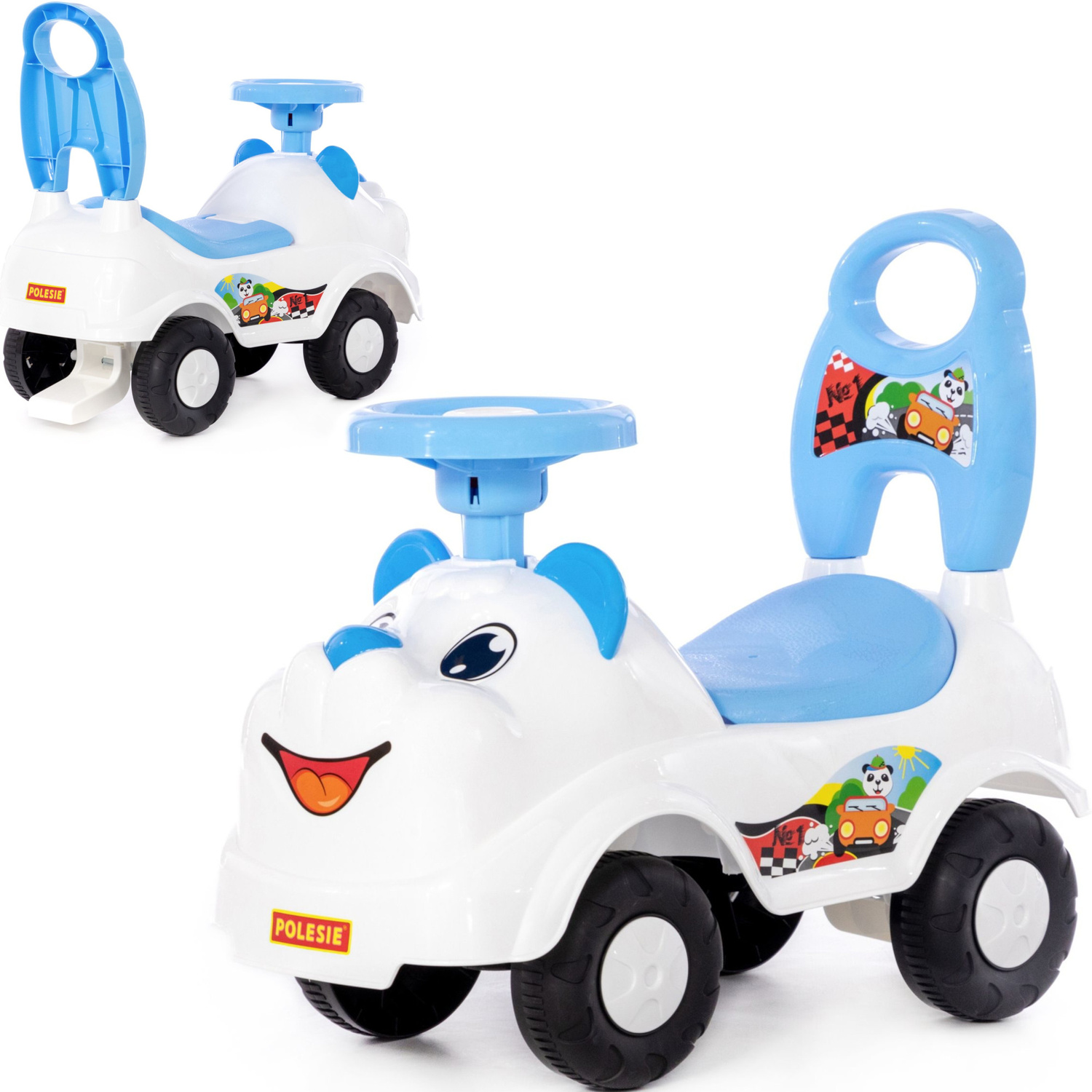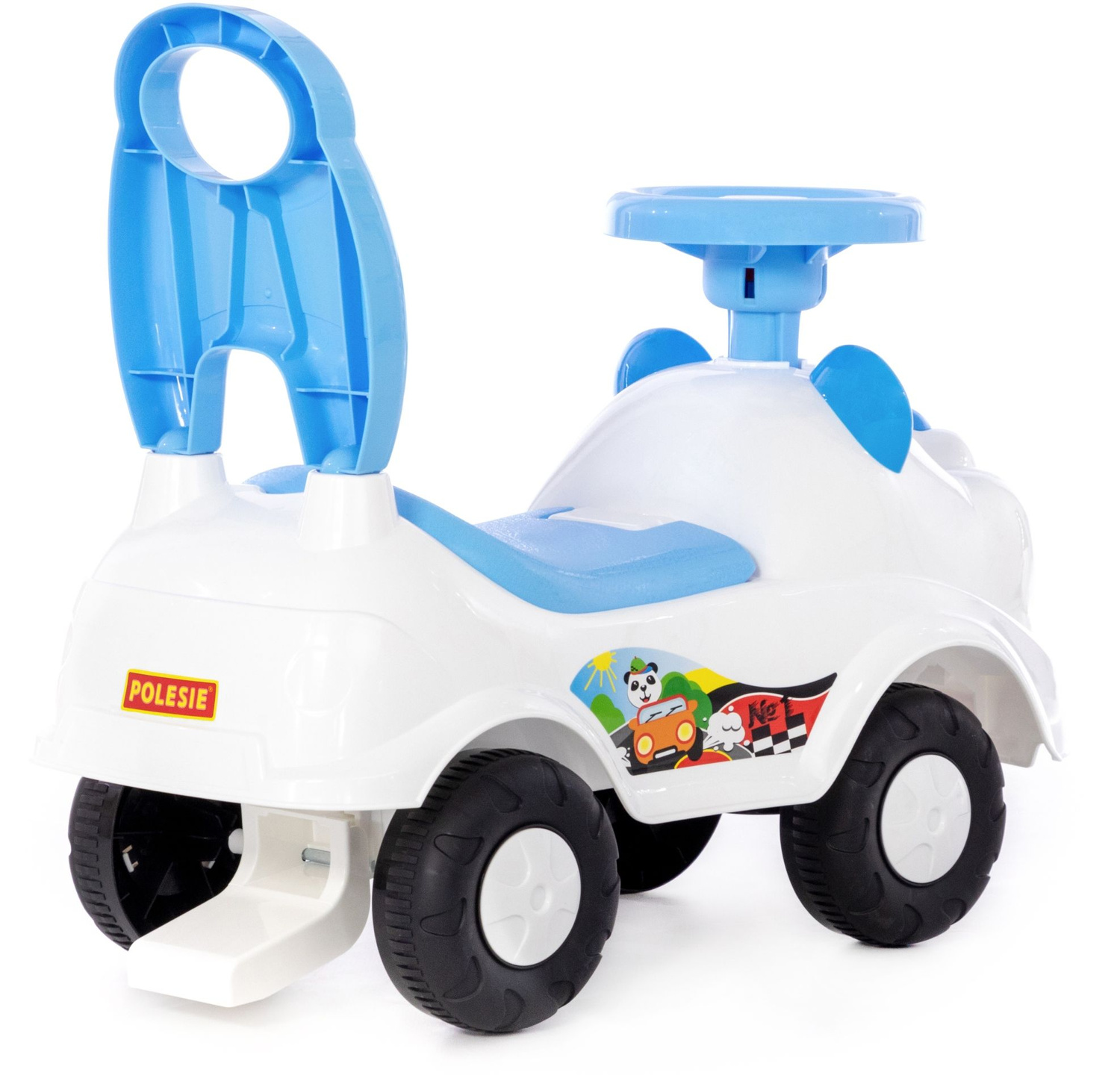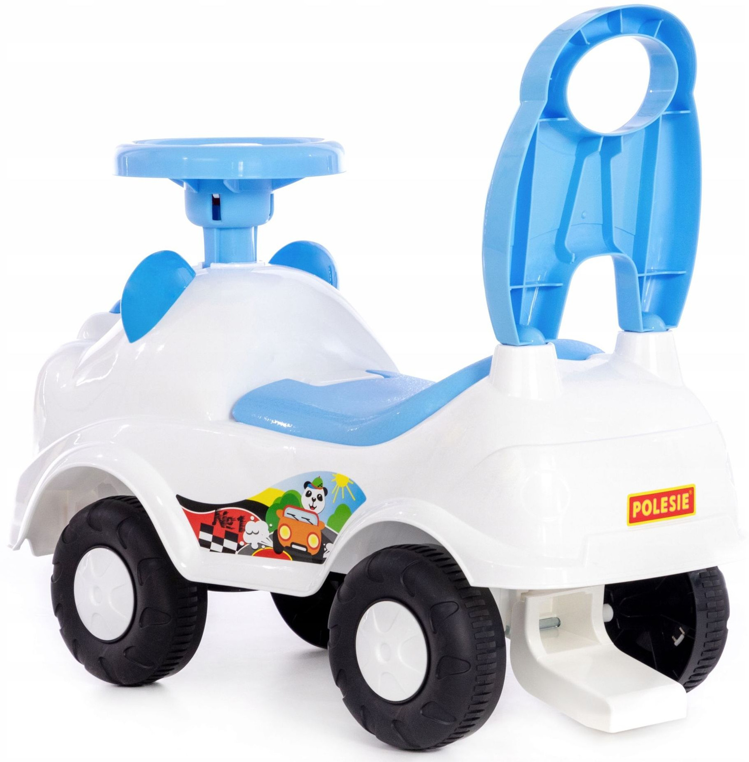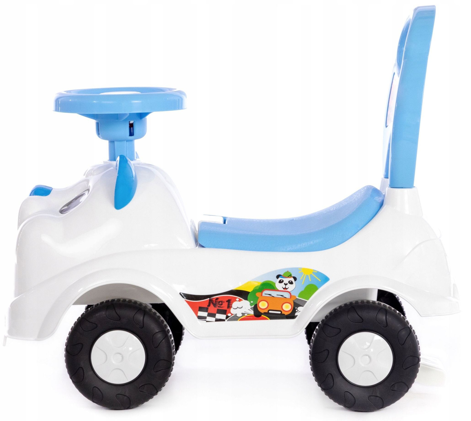 Wielofunkcyjny jeździk przeznaczony jest dla małych dzieci. Dziecko może na nim siedzieć i poruszać się, odpychając nóżkami. Gdy dziecko stawia pierwsze kroki może wspierać się na tylnym uchwycie. Samochodzik posiada klakson który przykuwa uwagę, pobudzając ciekawość i słuch. Szerokie koła i wygodna kierownica to zdecydowanie większy komfort zabawy. Dodatkową zaletą jeździka jest schowek w siedzeniu, gdzie dziecko może przechowywać swoje zabawki.