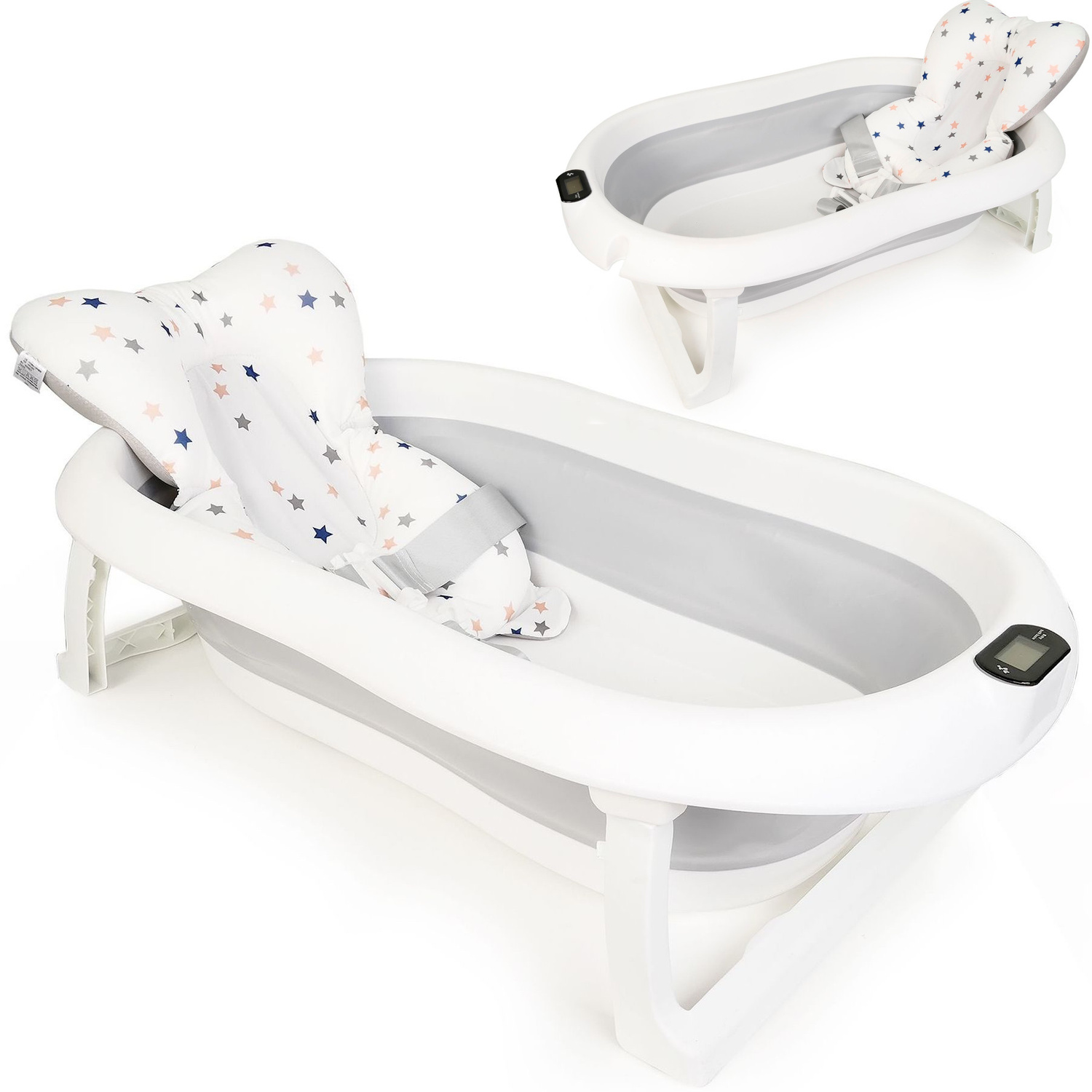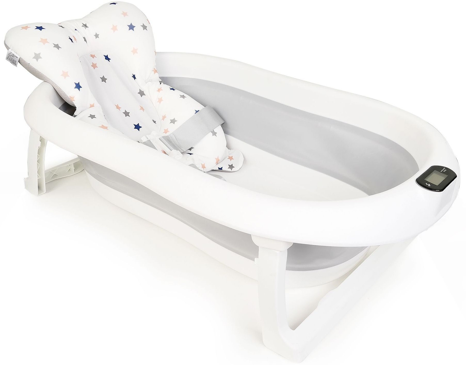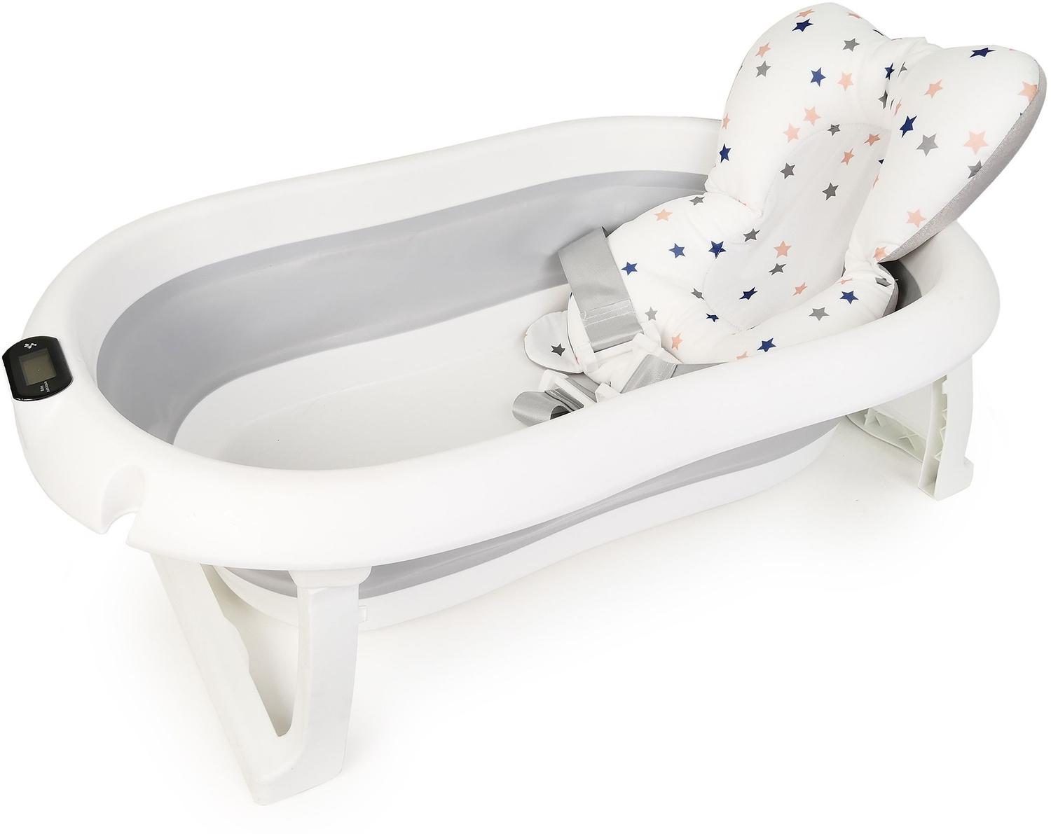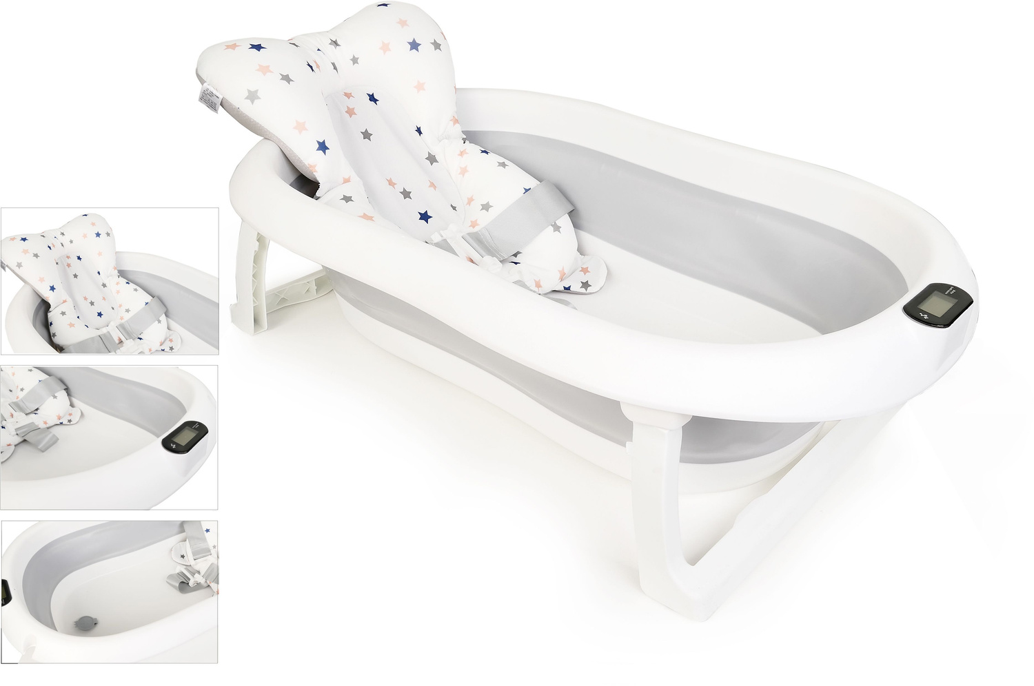 SKŁADANA WANIENKA DLA NIEMOWLAKA turystyczna TERMOMETR PODUSZKA wanna SZARA