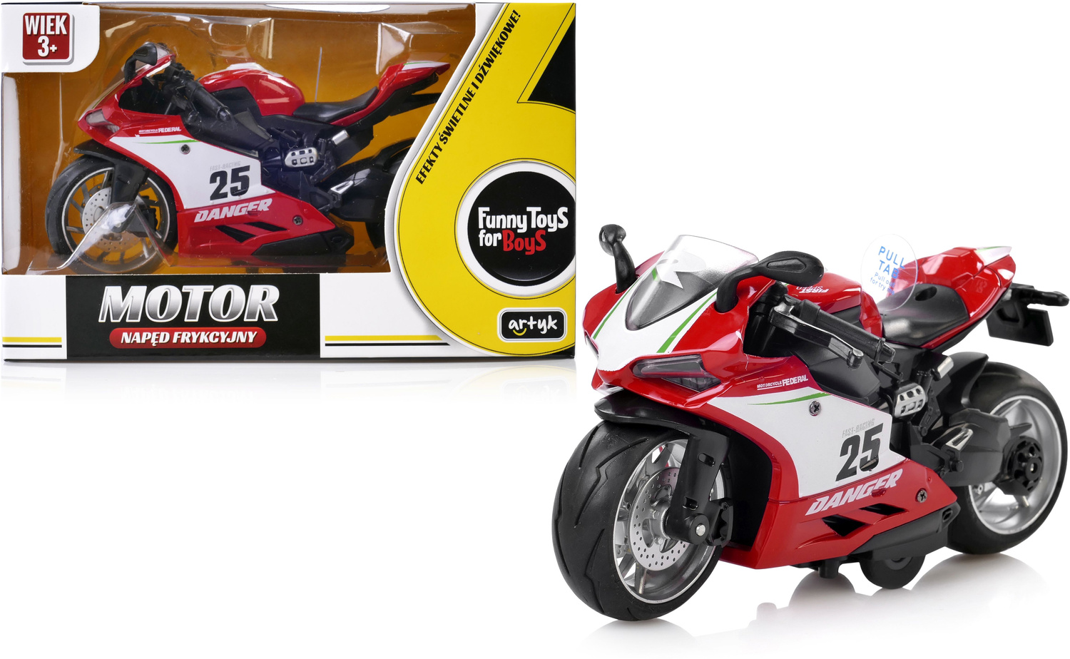 MOTOCYKL Z NAPĘDEM MOTOR Światło Dźwięk POJAZD ŚCIGACZ CZERWONY