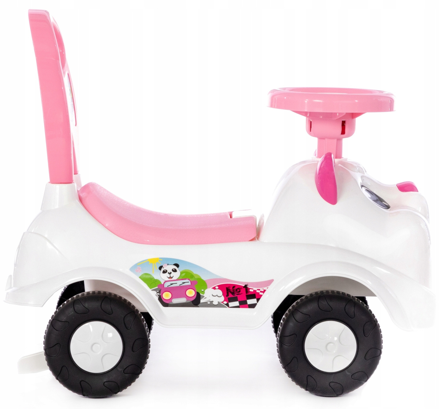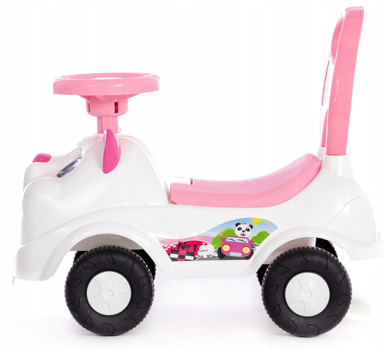 JEŹDZIK CHODZIK PCHACZ DLA DZIECI dziewczynki AUTO autko BIAŁY MIŚ klakson schowek