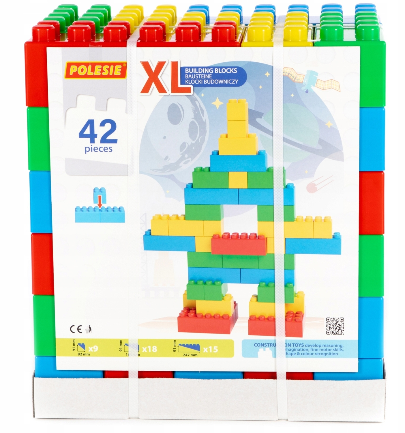 Klocki XL wykonano z bezpiecznego, atestowanego tworzywa. Twój maluszek będzie się świetnie bawił tworząc proste konstrukcje. Budowanie i dopasowywanie kształtów wspaniale wpłyną na rozwój wyobraźni, koordynacji wzrokowo - ruchowej oraz umiejętności kreatywnego i logicznego myślenia. Zbierz więcej zestawów i buduj coraz większe konstrukcje. Jakość wykonania gwarantuje renomowana firma Polesie.