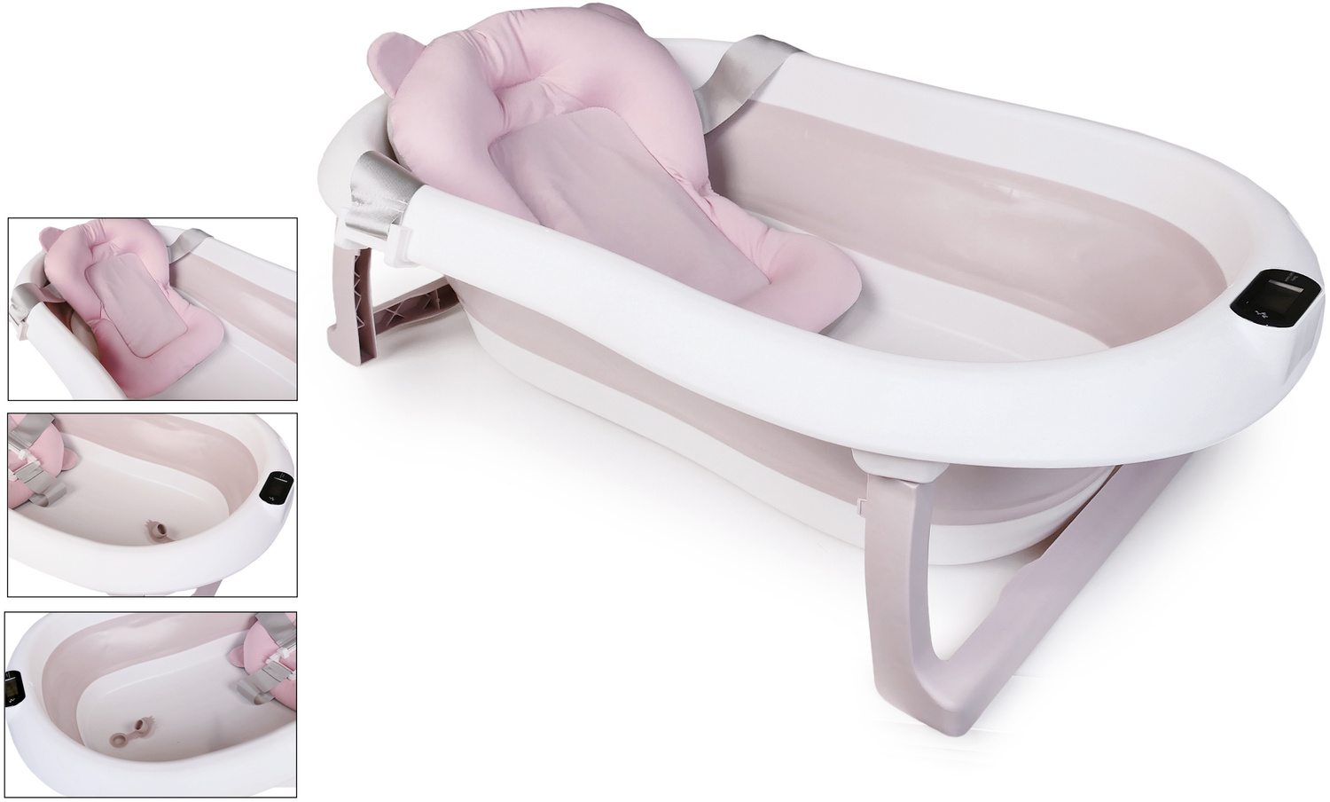 Składana wanienka to idealny produkt dla najmłodszych dzieci, które uwielbiają pluskać się w wodzie. Doskonale sprawdzi się w małych mieszkaniach lub na wakacyjnym wyjeździe jako alternatywa dla tradycyjnej plastikowej wanienki. Jest lekka, poręczna, a po złożeniu nie zajmuje wiele miejsca. Już nie musisz się martwić jak podczas urlopu wykąpać maleństwo. Wbudowany termometr ułatwi przygotowanie idealnej wody do kąpieli, a miękka poduszka zapewni odpowiedni komfort.