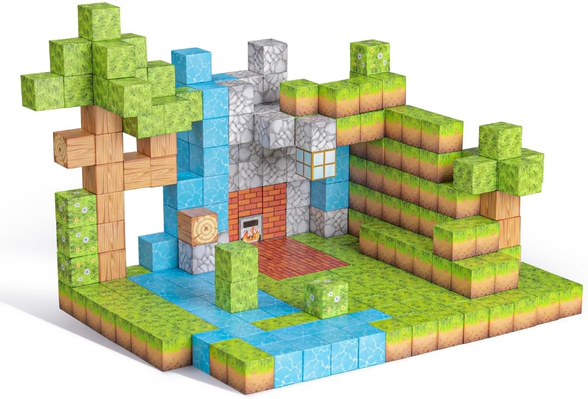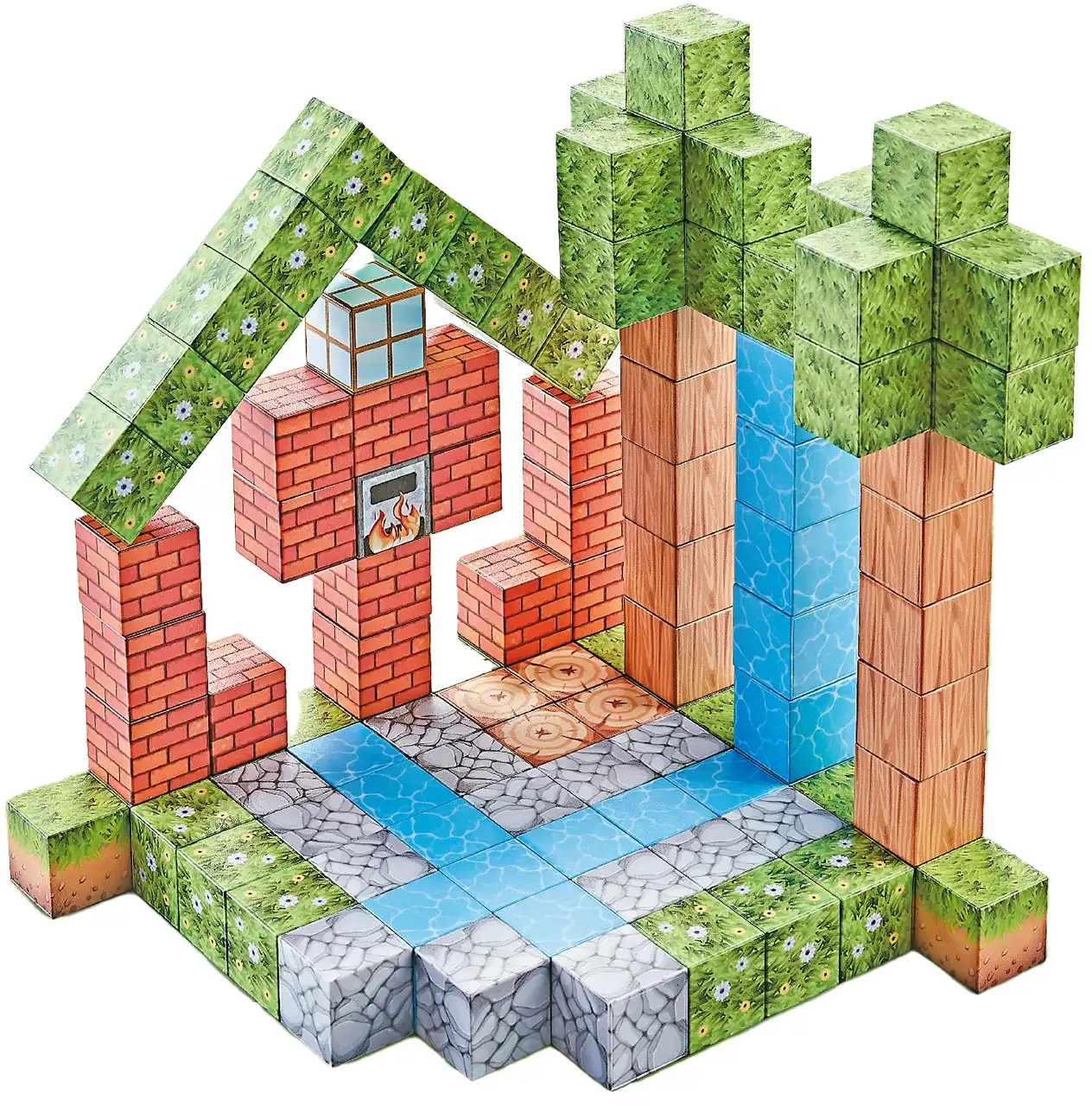 Wysokiej jakości magnetyczne kostki dedykowane najmłodszym dzieciom. Dzięki mocnym magnesom wbudowanym w środek klocków, można układać je w dowolny sposób i kształt. Klocki są w kształcie sześcianu, każdy z klocków ma boki o długości 2cm - z nadrukowaną teksturą wyglądają jak piksele z gry!