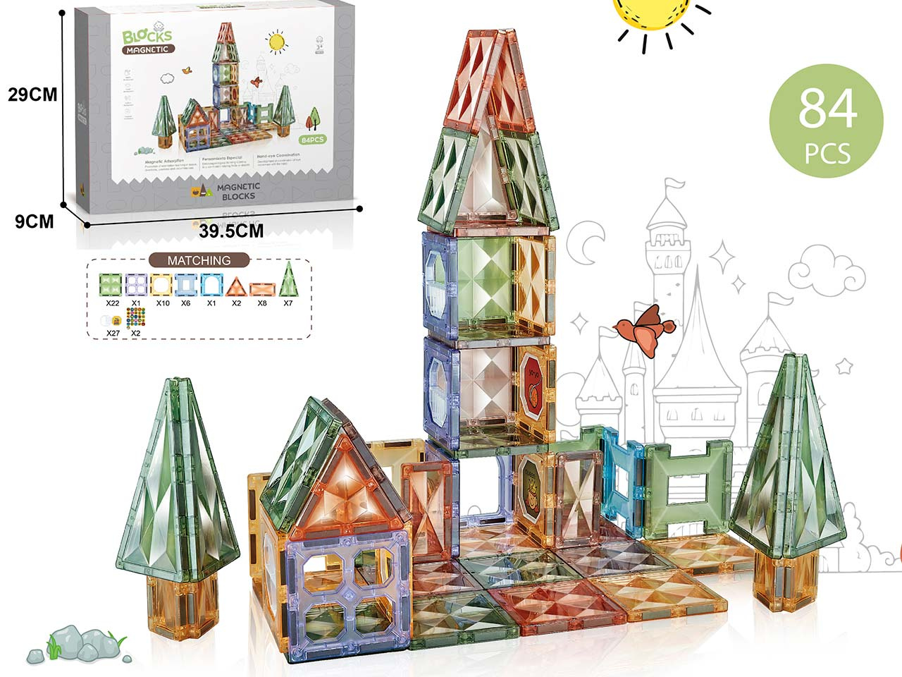 KLOCKI MAGNETYCZNE KOSTKI 3D 84el