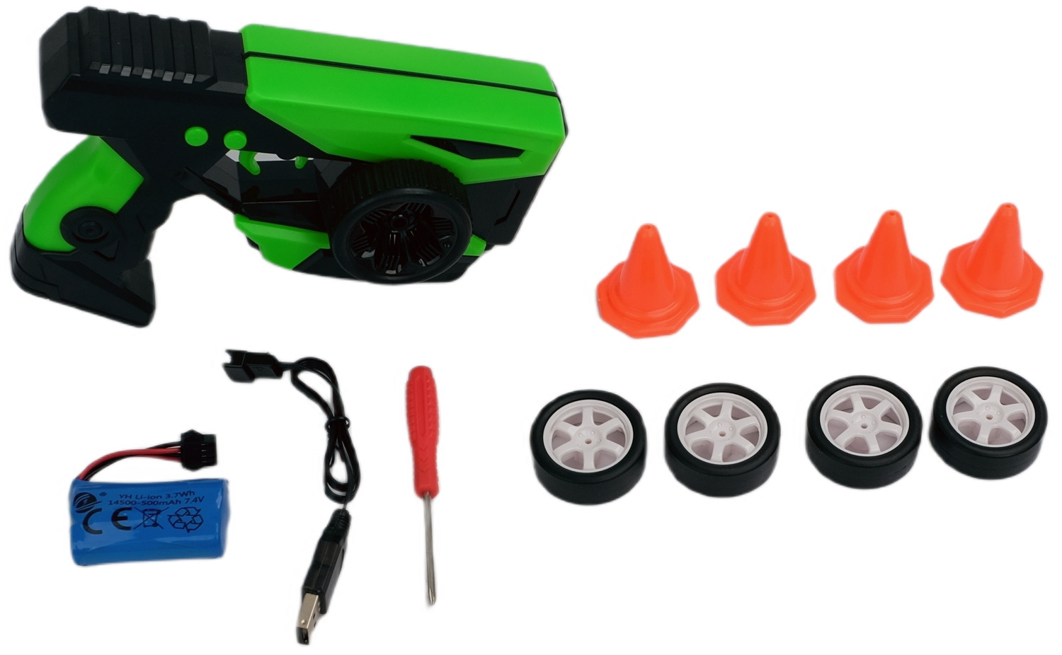 Sterowanie pojazdem wykonywane jest za pomocą intuicyjnego pilota. Pilotem regulujemy moc pojazdu - zmienia się wtedy podświetlenie pod autem (zielony do 12 km/h, niebieski do 16 km/h, czerwony do 20 km/h). Koła pojazdu są gumowe i ułatwią poruszanie, są jednocześnie ciche. Dodatkowy komplet kół z oponami bez bieżnika ułatwi prowadzenie autka w kontrolowanym poślizgu pomiędzy pachołkami! Pojazd sprawi, że chłopiec poczuje się jak kierowca prawdziwego driftowozu!