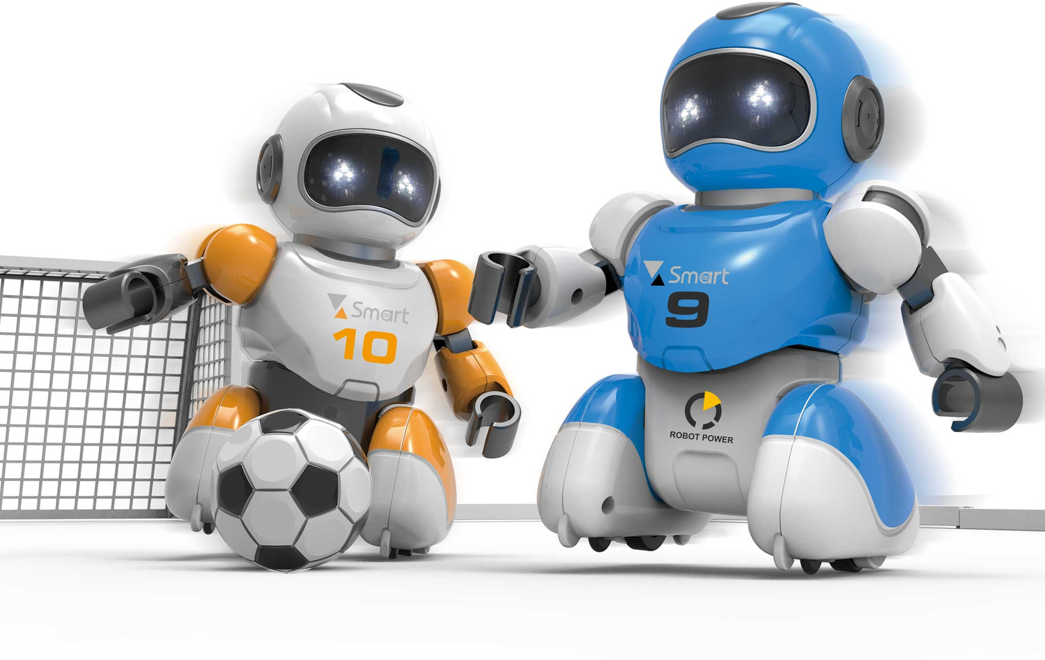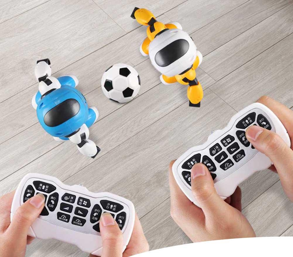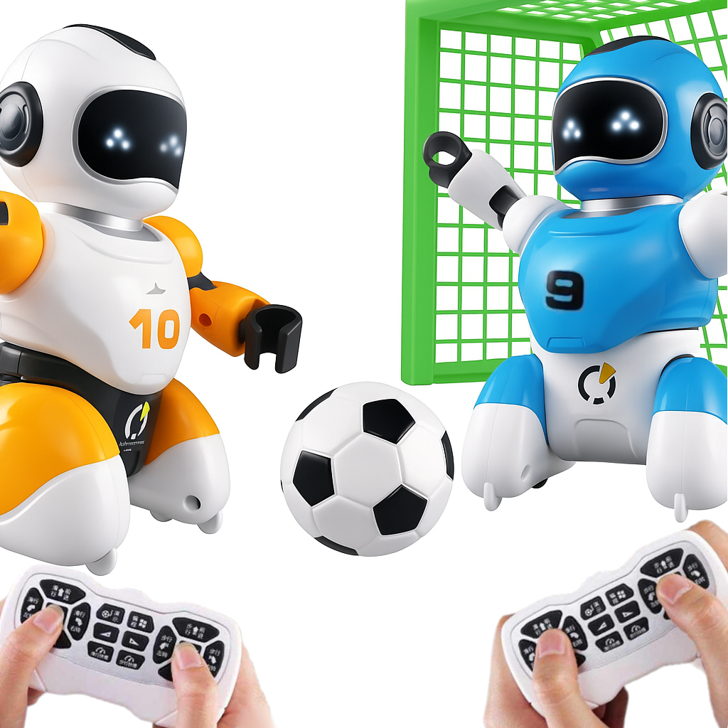 Te 2 piłkarskie roboty to najnowsze osiągnięcie robotyki i zabawka, z którą możliwości zabawy są kosmicznie przeogromne. Przybył na ziemię by słuchać Twoich komend i pokazać Ci swoje umiejętności na boisku piłkarskim. A tych jest niezwykle dużo, Robot może: poruszać się, ślizgać się oraz strzelać gole! Rewelacyjna zabawa dla 2 osób. W zestawie nie zabrakło 2 bramek oraz piłki.