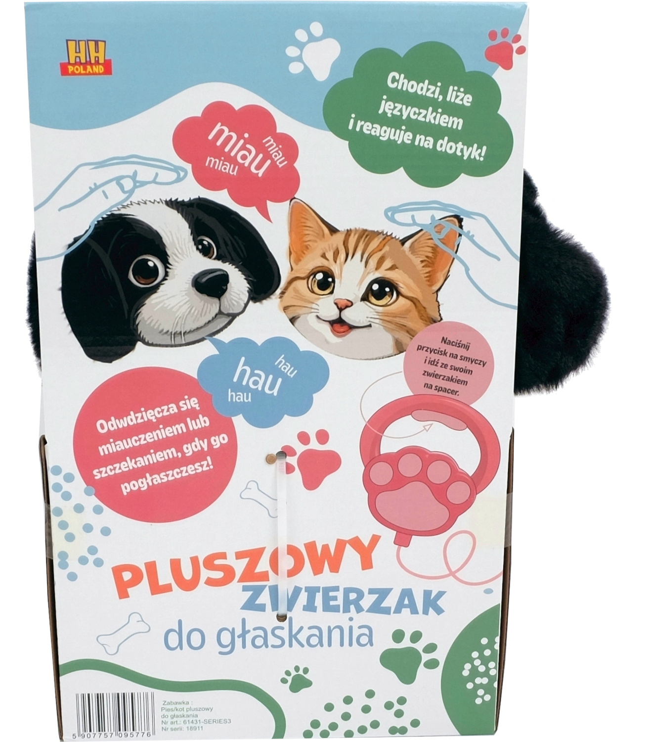 Uroczy piesek uruchamiany przyciskiem na rączce smyczy: