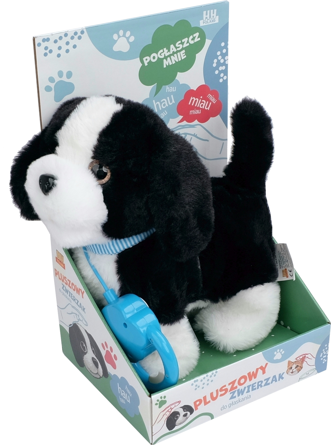 Naciśnij przycisk na rączce smycz, a Twój piesek zacznie uroczo dreptać, ruszać główką oraz merdać radośnie ogonkiem. Słodki zwierzaczek, nowy przyjaciel Twojego dziecka ma milutkie futerko, niebieska oczka i nosek ze śmieszną minką.