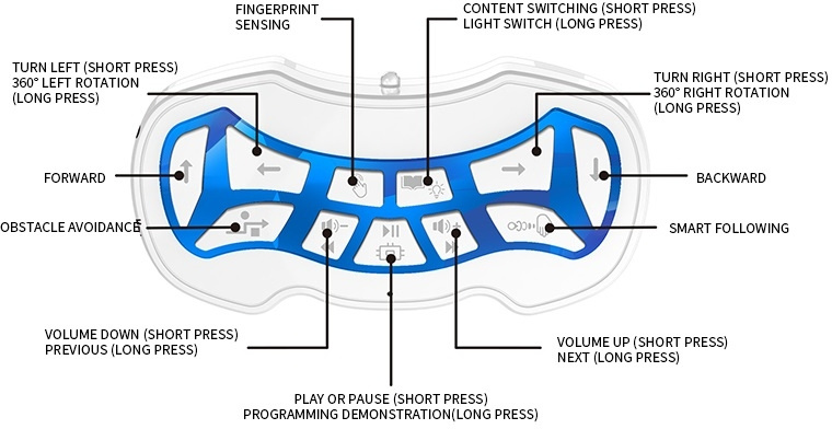 Robotem można sterować przy pomocy pilota lub gestów dłoni. W trybie programowania można przypisać dowolną sekwencję ruchów robota do 20 komend. Robot wyposażony jest również w czujnik dotyku, dzięki czemu dziecko może wejść w interakcje z robotem! Robot pomimo swoich rozbudowanych i zaawansowanych funkcji, jest bardzo prosty w obsłudze, Już kilkuletnie dziecko bez problemu powinno poradzić sobie z obsługą.
