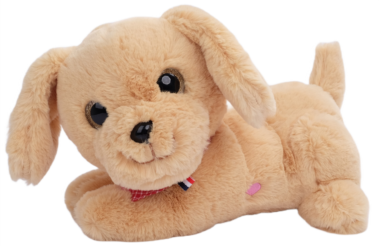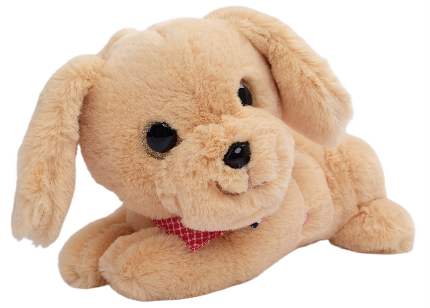 Piesek jest mięciutki i idealny do przytulania, a materiał wysokiej jakości, z którego został wykonany jest miły i delikatny w dotyku.