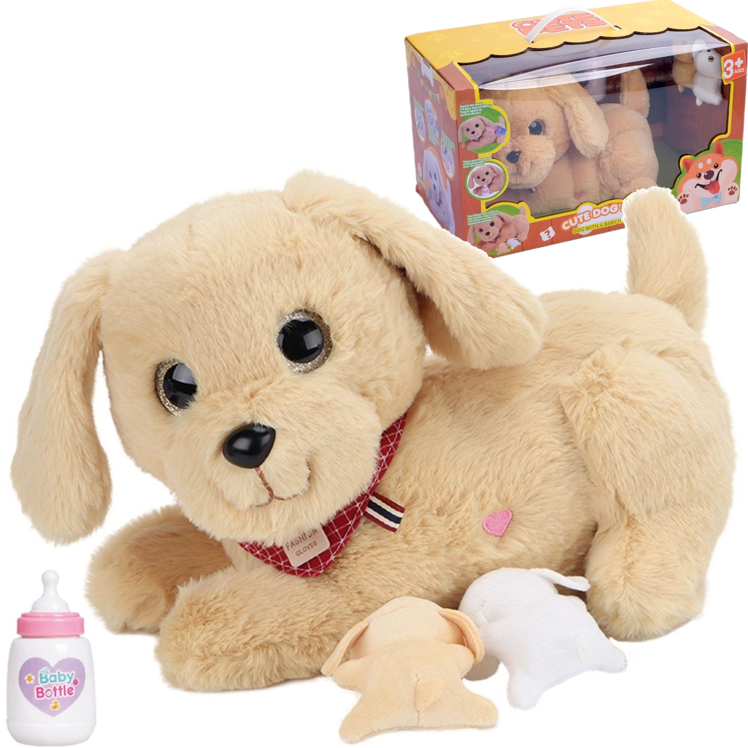 Dzieci uwielbiają słodkie pieski. Marzą o własnym pieski, z którym mogłyby bawić się i głaskać jego puchate futerko. Ale na prośby o małego puchatego przyjaciela rodzice odpowiadają "Jesteś jeszcze za mała". Uroczy pluszowy piesek to odpowiedź na dziecięce marzenia. Mięciutki piesek zachowuje się zupełnie jak prawdziwy pies: szczeka, mruczy a nawet ma własne małe szczeniaczki którymi się opiekuje! Psia mama uwielbia być głaskana i przytulana, wtedy naprawdę jest szczęśliwa!