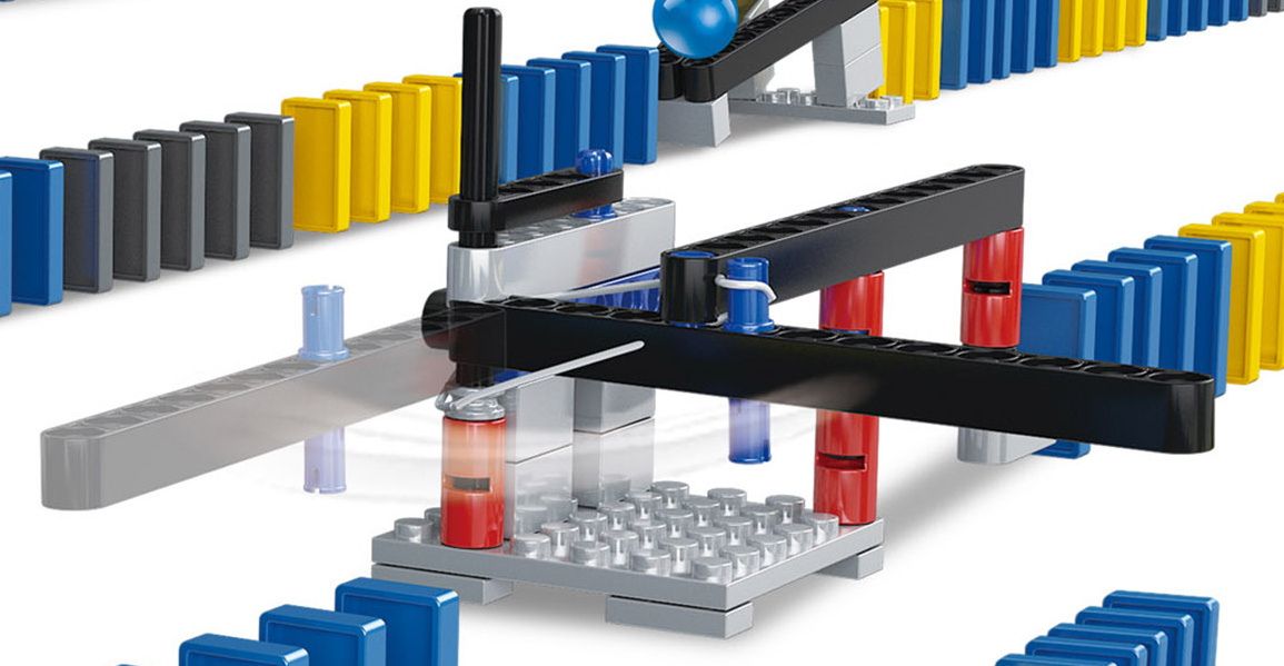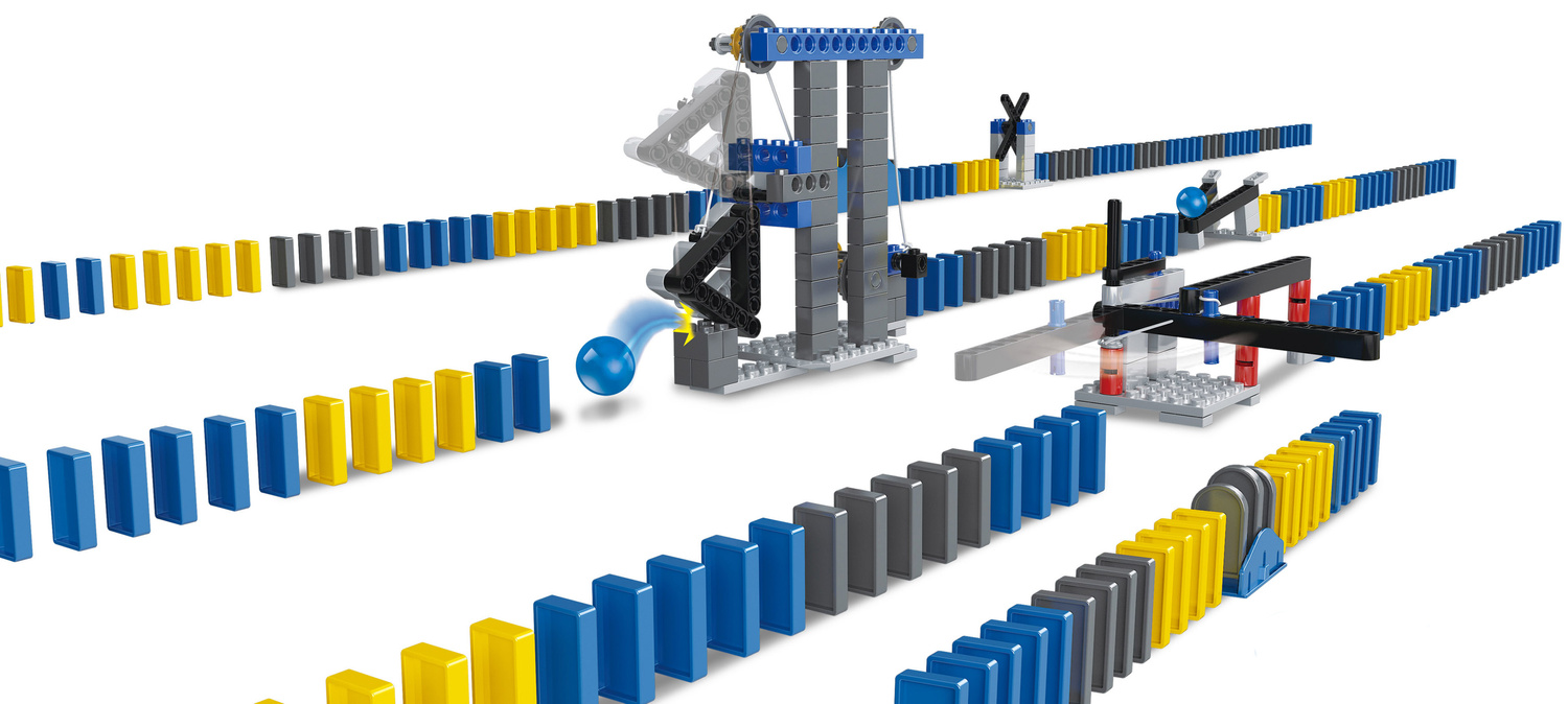 Emocjonującą zabawą w układanie domino, łączna długość ułożonych klocków to aż 6m! W zestawie znajdują się różnorodne tory, mechanizmy i przeszkody, po których przewracają się kolorowe kostki domino. Wykorzystaj elementy konstrukcyjne, kulki oraz specjalne rampy i dźwignie, które wprowadzają dodatkowe efekty podczas zabawy. Dziecko rozwija przy tym wyobraźnię, zdolności manualne i logiczne myślenie, a każdy przewracający się klocek dostarcza satysfakcji i zachęca do tworzenia coraz dłuższych układów.