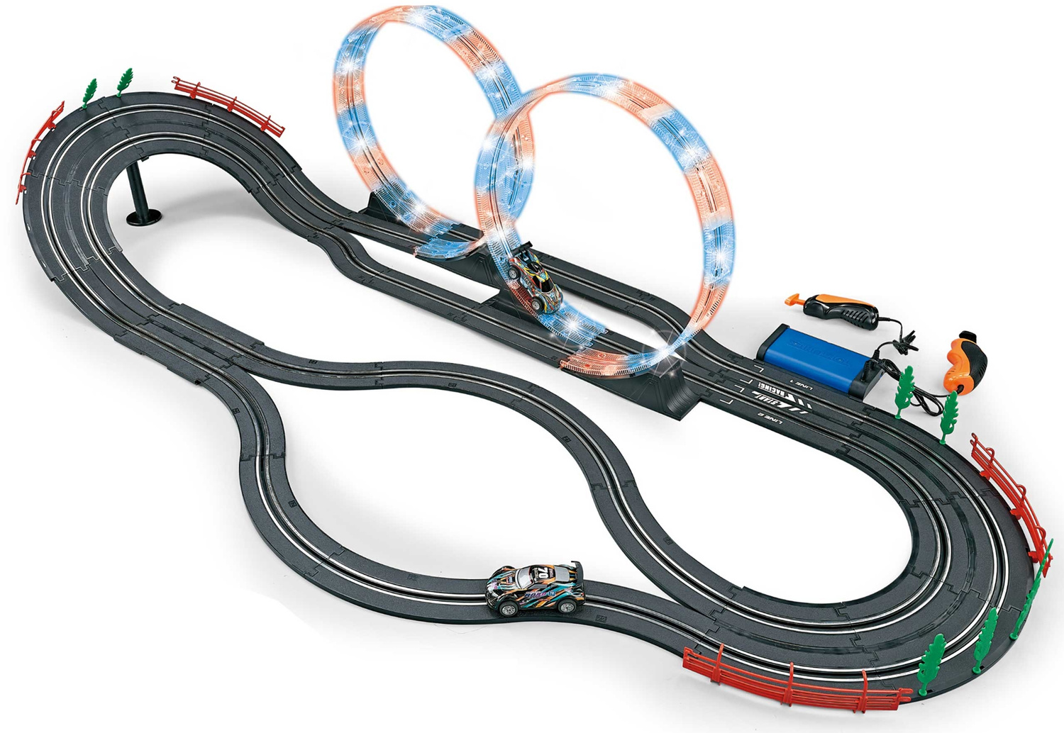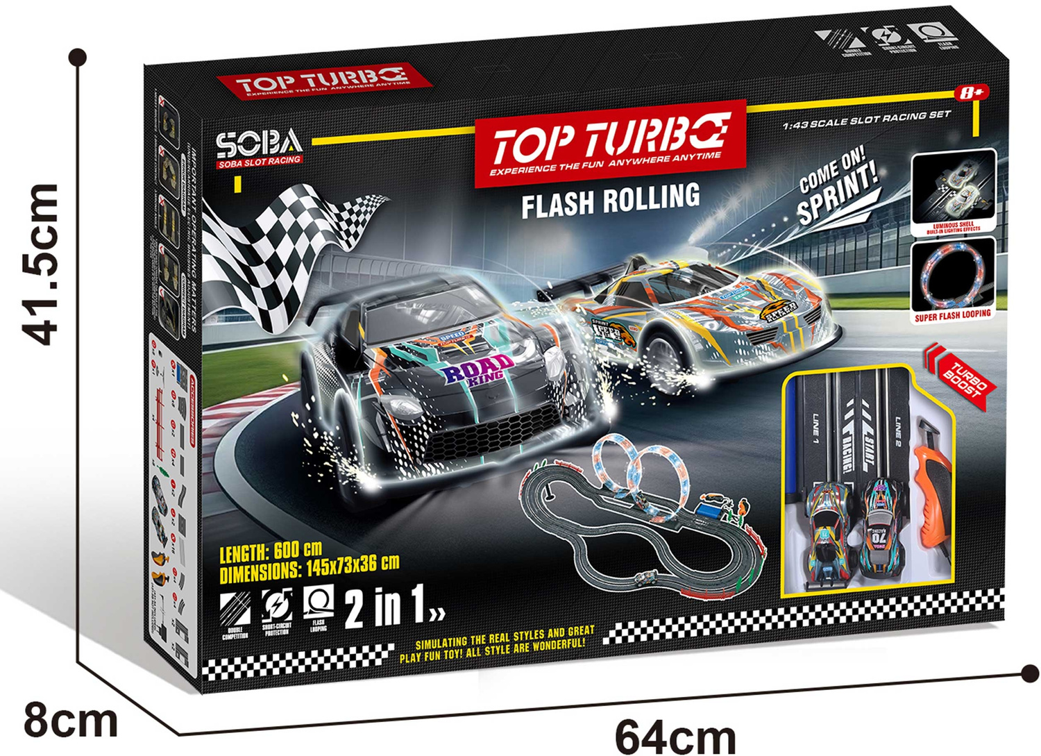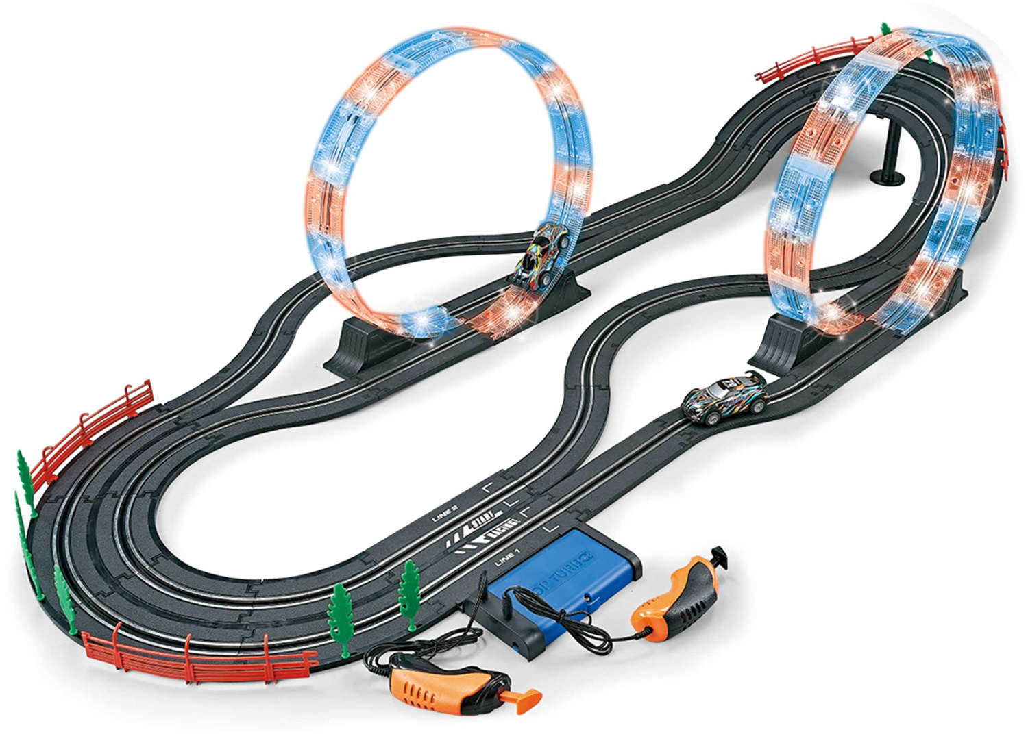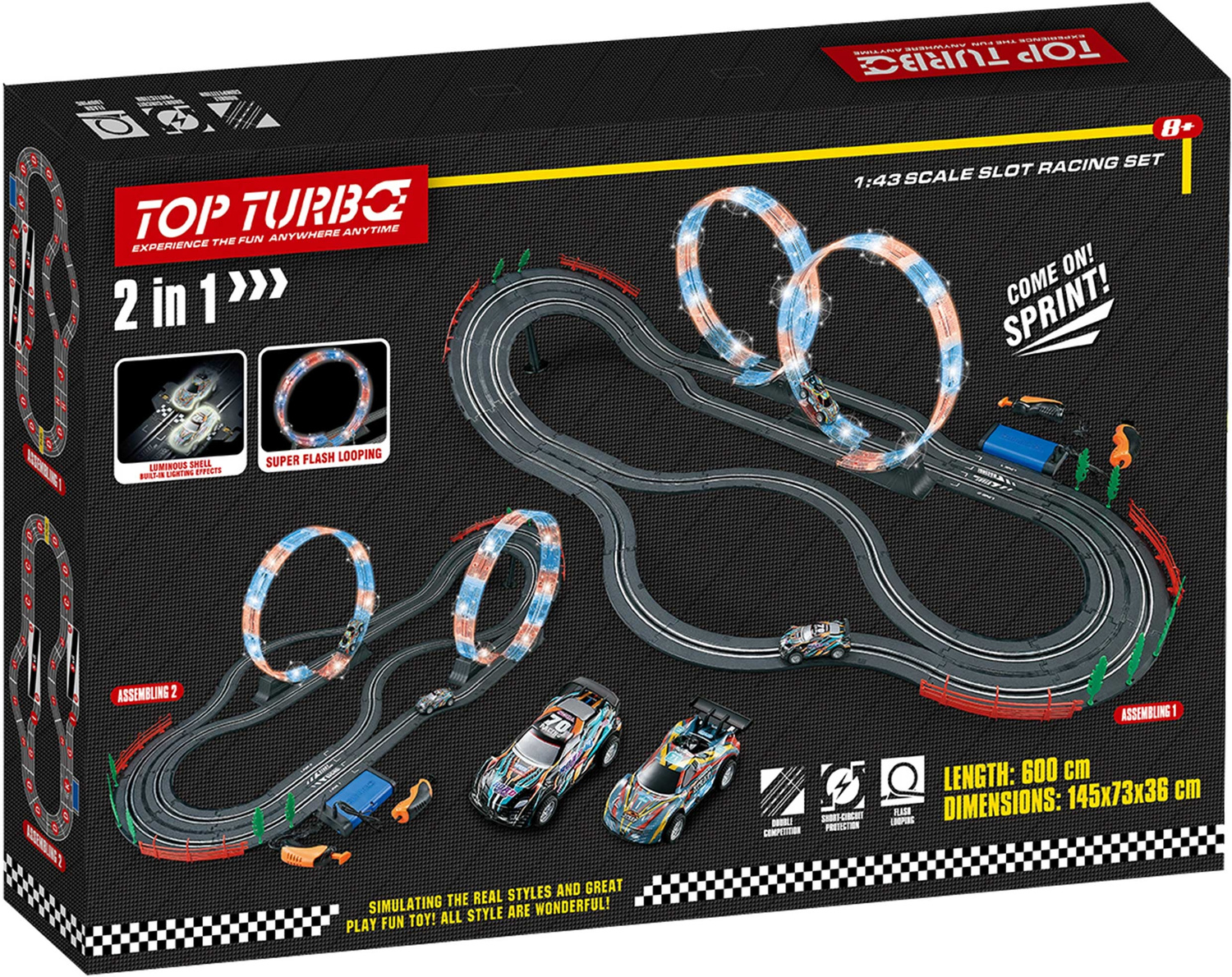 Super zabawa dla najmłodszych i tych nieco starszych fanów zabawek na czterech kółkach! Tor wyścigowy 2w1 - możesz się ścigać na 2 różnych konfiguracjach toru! Ekstremalne przeszkody takie jak podświetlane pętle, rozdzielony tor jazdy czy ostre zakręty zapewnią sporą dawkę adrenaliny podczas rywalizacji z innymi!