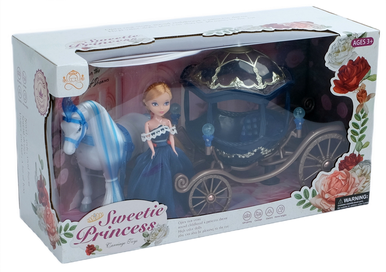 Bajkowa kareta dla lalek w kształcie dyni pozwoli każdej małej księżniczce przenieść się w świat fantazji i spełnić swe marzenia. Niebieska karoca na kołach, z przezroczystym dachem, zawiezie lalkę księżniczkę na bal do królewskiego zamku. Ciągnie go przepiękny biały, długowłosy koń z uprzężą, który chodzi i wydaje prawdziwe odgłosy. Konikiem po zdjęciu uprzęży możesz też bawić się samodzielnie. Czyż to nie cudowne?