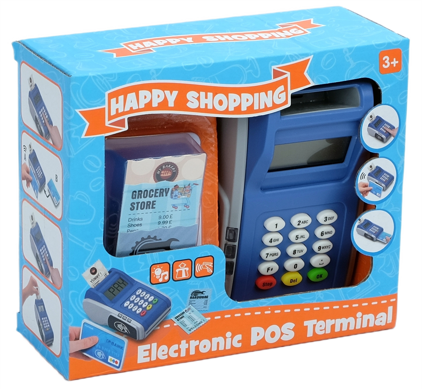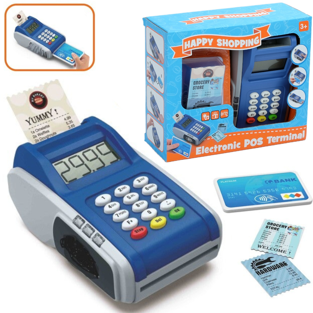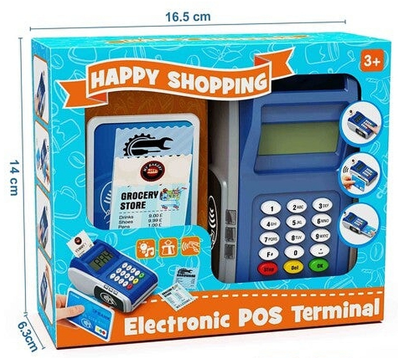 Terminal płatniczy idealny do zabawy w sklep i odgrywanie ról może pomóc dzieciom w ćwiczeniu umiejętności dodawania i odejmowania. Zabawka posiada prawdziwy czytnik kart oraz wyświetlacz. W zestawie jest też karta kredytowa i paragony. Twoja pociecha poczuje się jak w realnym supermarkecie.