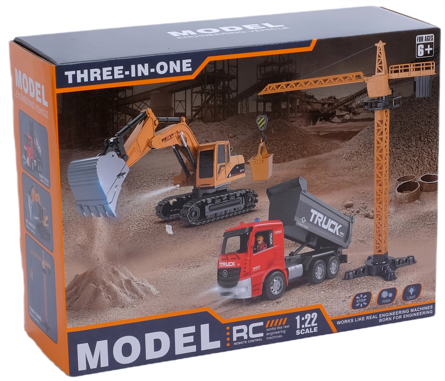 Zdalnie sterowana koparka, wywrotka + dźwig!