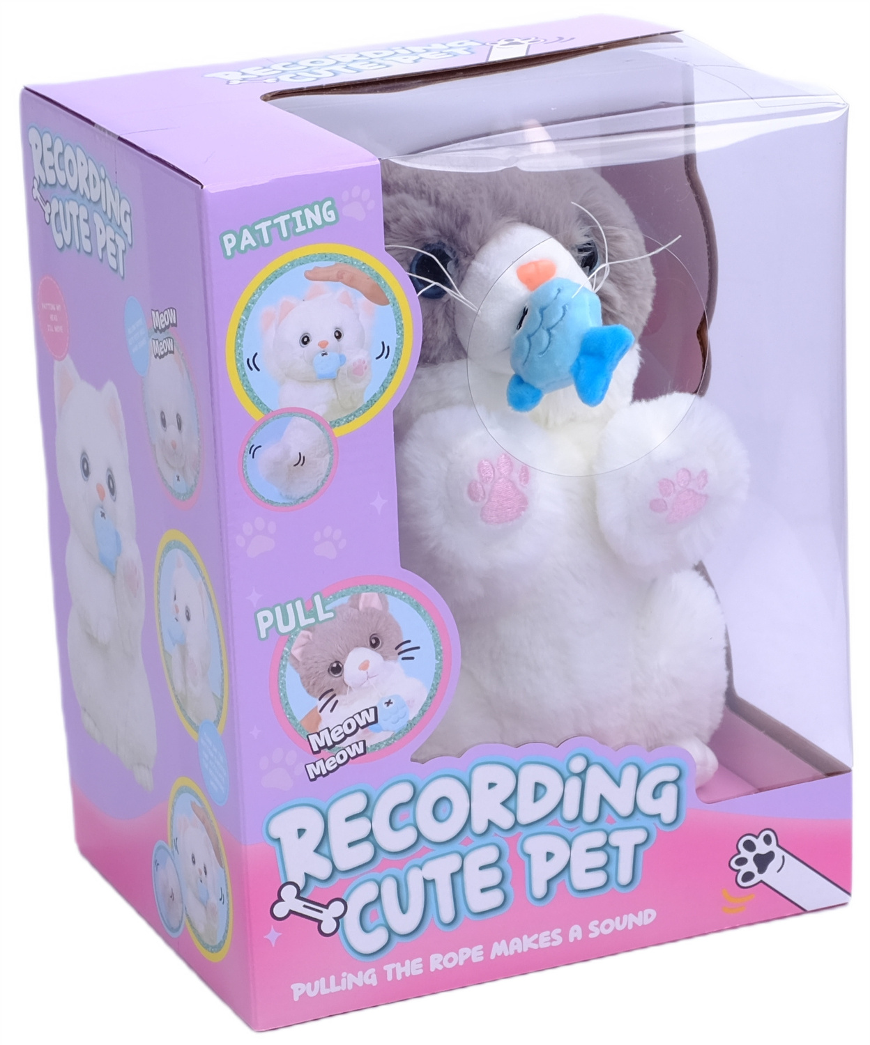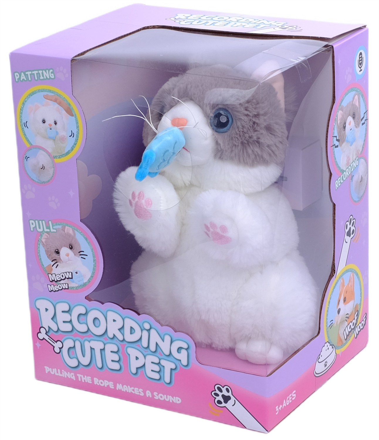 Kotek ma funkcję nagrywania dźwięków. Powiedz coś przy kotku, a on nagra wypowiedziane słowa i odtworzy je zabawnym głosikiem.