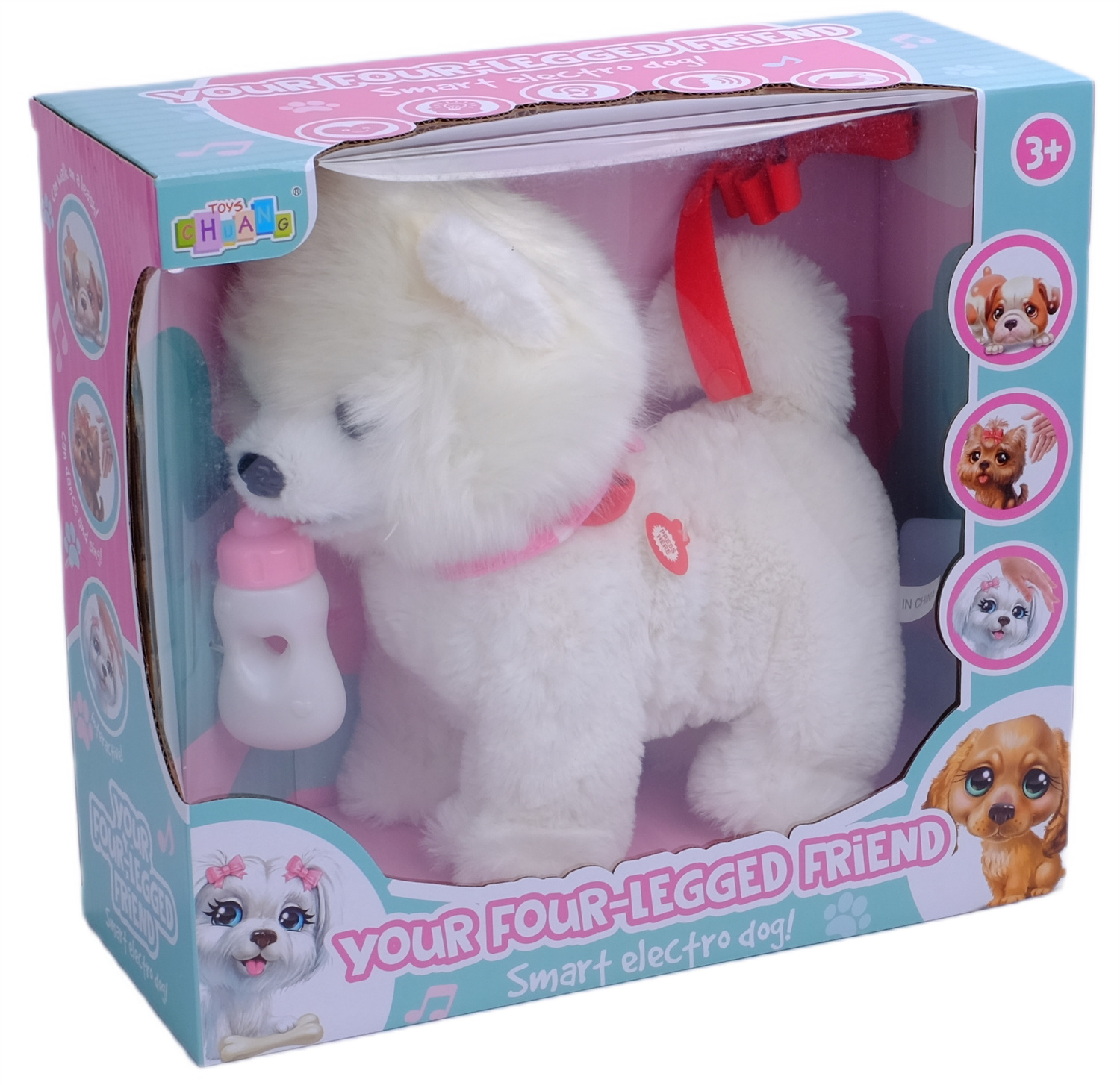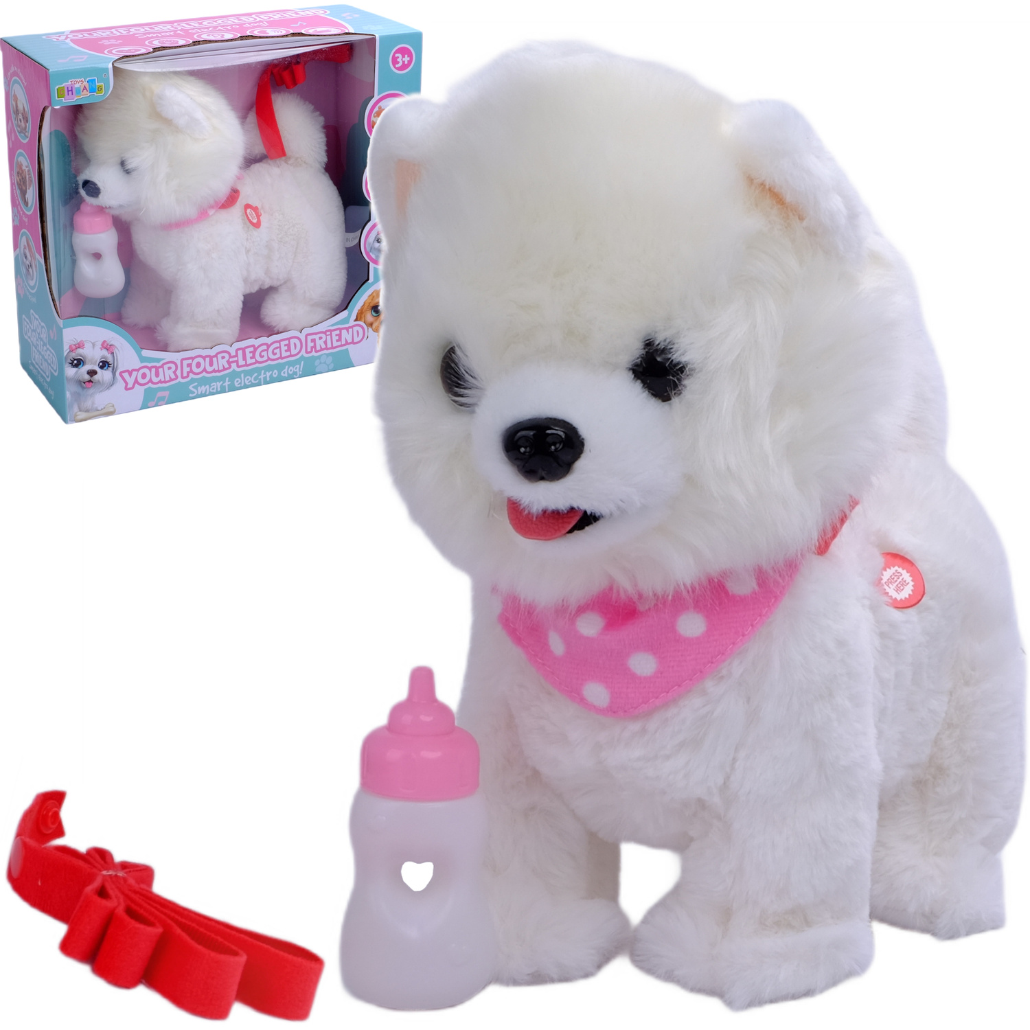 Każde dziecko marzy o swoim własnym pupilu. Mięciutki pluszowy piesek to spełnienie dziecięcych marzeń. Twoja pociecha pokocha go od pierwszego wejrzenia. Chodzący piesek bardzo cieszy się, kiedy może spędzać z Tobą czas! Uwielbia, kiedy go przytulasz. Jest taki milutki i uroczy! Pogłaszcz swojego pieska po główce - zacznie szczekać i merdać ogonkiem! Zabierz swojego pupila na spacer! To takie proste, a wspólna zabawa taka przyjemna! To gdzie razem pójdziecie?