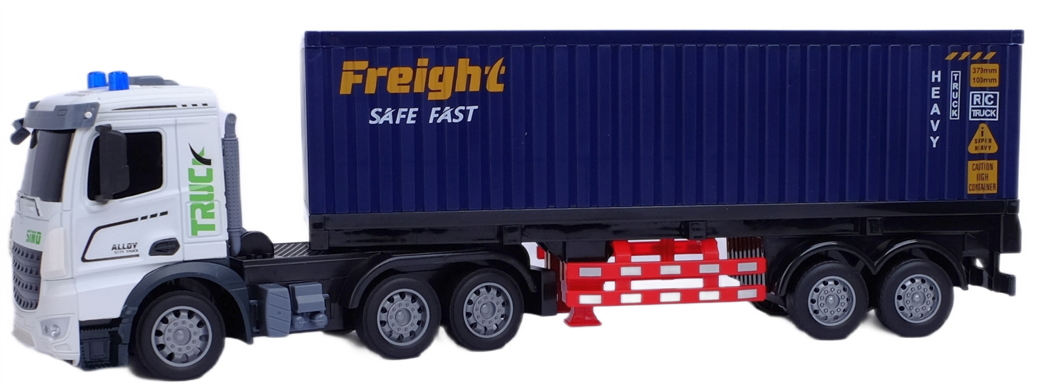 Pojazd ma biało-szarą kabinę z charakterystycznymi detalami, takimi jak grill na przodzie oraz niebieskie światła na dachu, które świecą jak tir jeździ czy odtwarza muzykę. Tir emituje dźwięki silnika i klaksonu. To świetna zabawa na długie godziny!