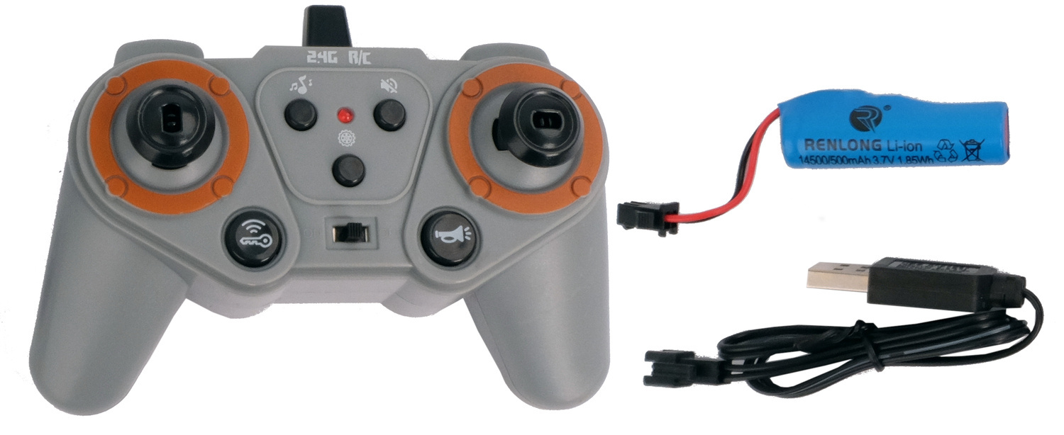 Sterowanie pojazdem wykonane jest za pomocą bezprzewodowego pada. Kontroler posiada dwa analogowe drążki, które umożliwiają precyzyjne manewrowanie pojazdem. Potężne koła pojazdu ułatwią poruszanie i są jednocześnie ciche.